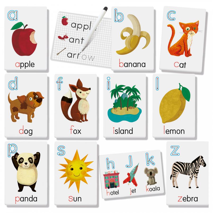 Descopera primele experiente cu citirea si scrierea pe aceste Cartonase de la Headu! Pe o parte, cei mici vad formele si le potrivesc cu prima litera a cuvantului; pe cealalta parte, ei practica scrisul, urmarind cuvintele folosind pixul cu stergere uscata.