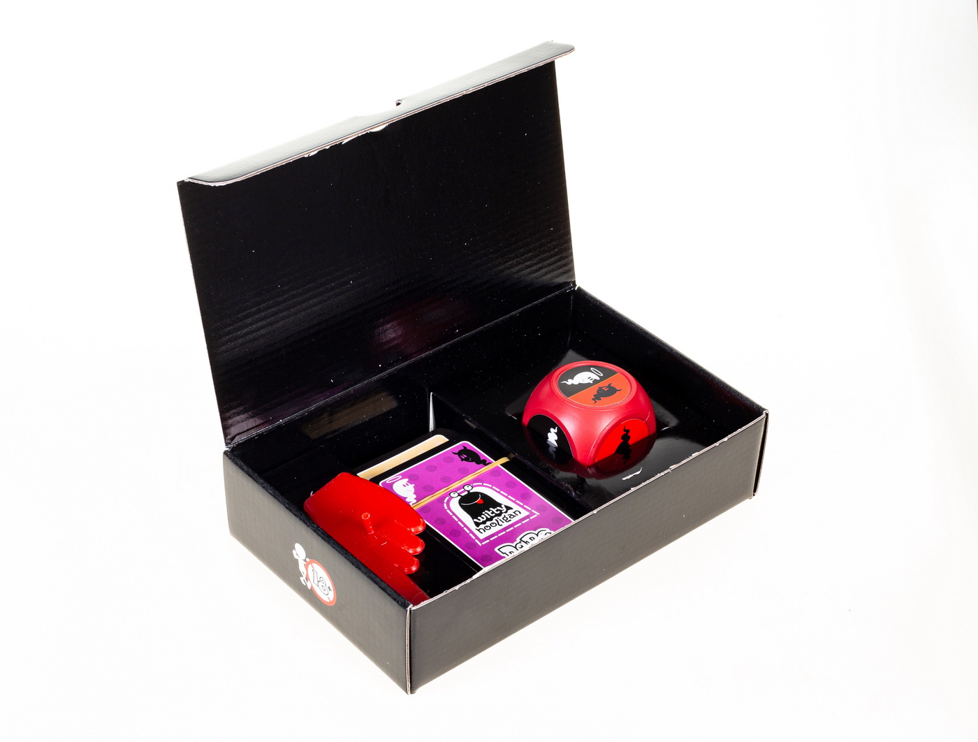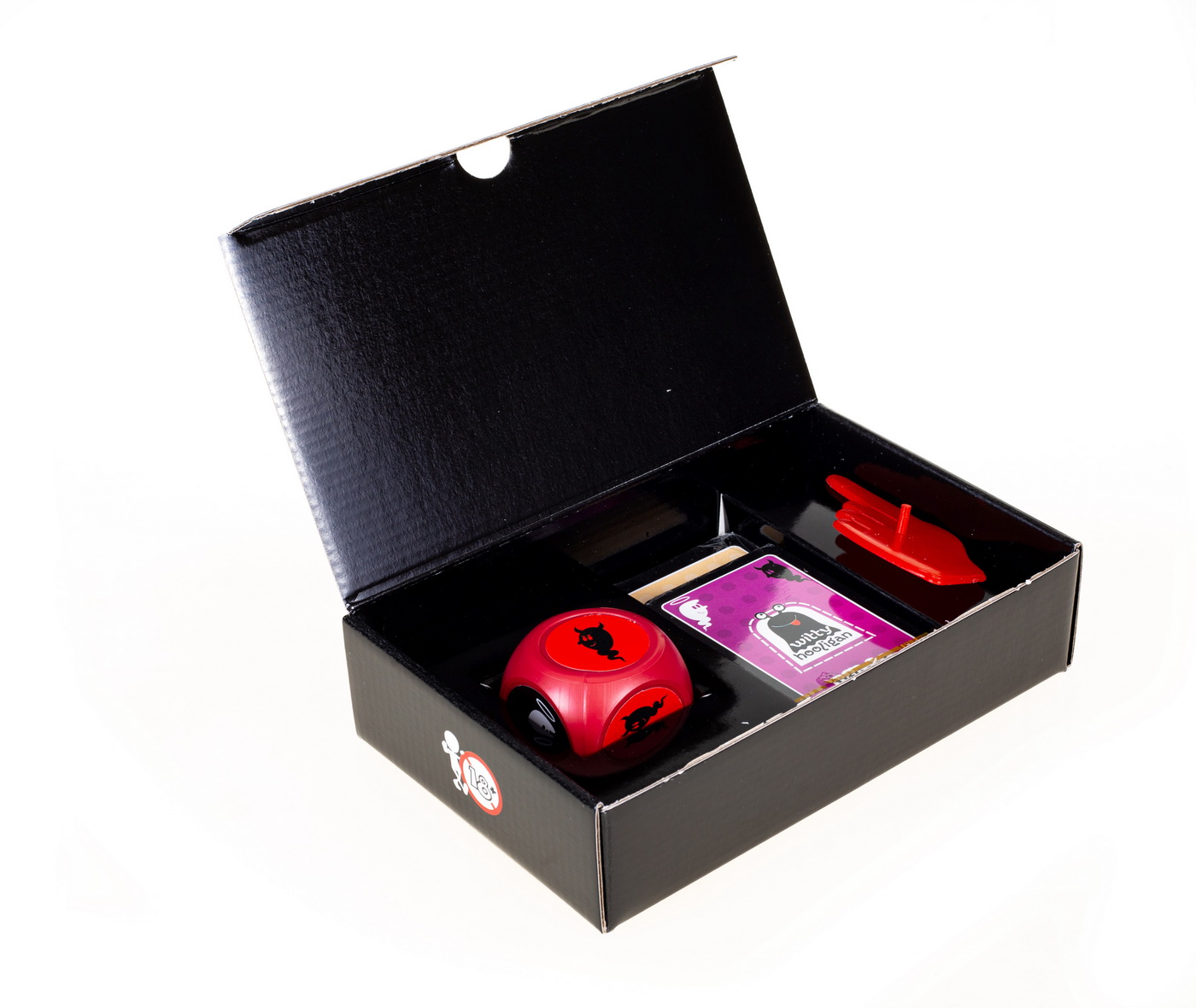 Pachetul contine: 84 de carti,1 zar, 1 sageata. Jocul se poate juca in 2-20 jucatori.