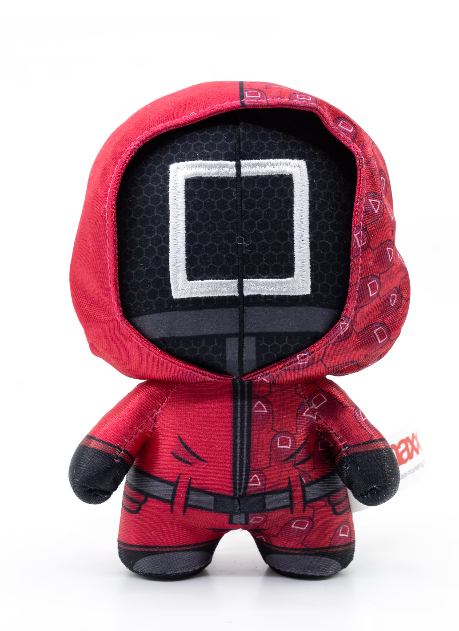 Jucăria de pluș îl arată pe unul dintre cei din echipa celor care organizează Squid Game.