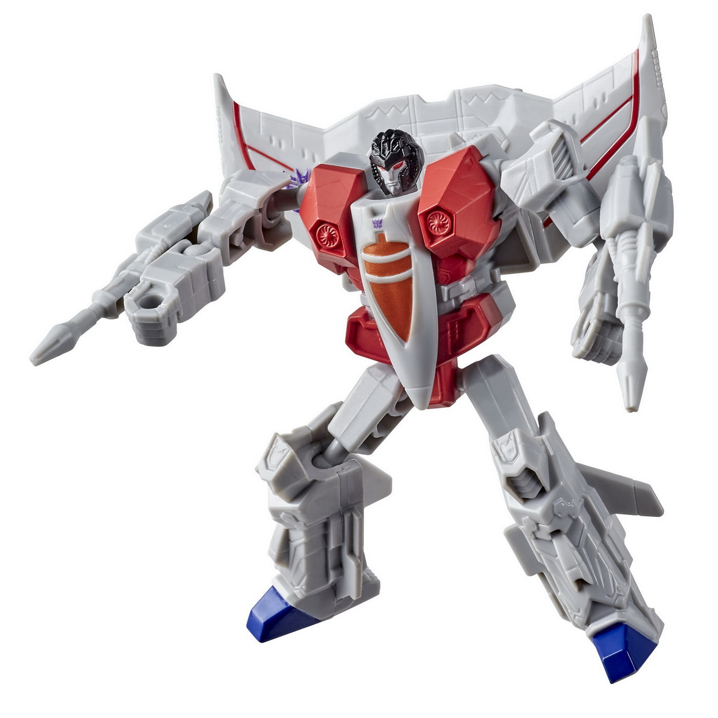 Robotii Transformers, sunt figurine articulate, transformabile. Au o inaltime de aproximativ 10 cm si se pot transforma intr-un camion, un schelet velociraptor si, respectiv, un sobolan. Robotul face parte din seria Authentics Bravo. Intra in universul Transformers de acesta serie de noi roboti! Razboiul dintre Autoboti si Decepticoni continua! Alaturate autobotilor pentru o batalie epica! In acest pachet este inclus personajul Decepticon, robotul StarScream.