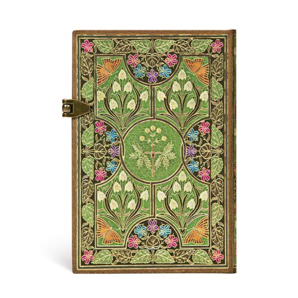 Unlike most of our designs, which emulate the front part of a book cover, this Poetry in Bloom design is a recreation of the original’s front “doublure,” the inside face of the cover board. Protected from wear, this part provides bookbinders with additional room for unleashing their creative skills. Here, the binders of Riviere and Son, a London-based binding house, used leather and gilt to create a naturalistic representation of flowers, leaves and butterflies. The sensitive plant, named after its reflex to fold its leaves when touched or shaken, is the focal point of the design’s composition, just as it is in Shelley’s poem.