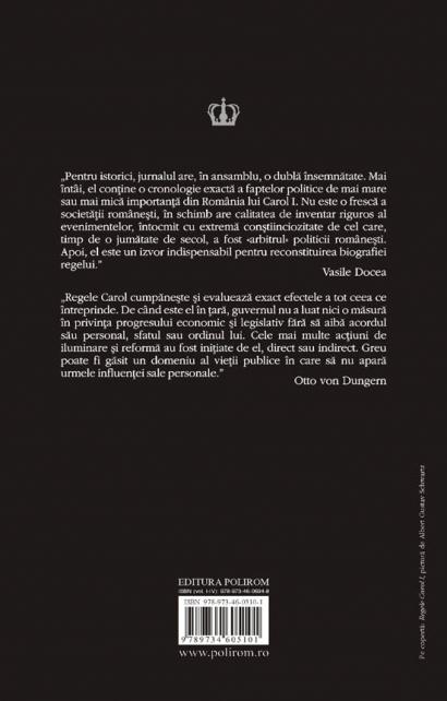 Pastrat in arhiva familiei regale si, mai apoi, la Arhivele Statului din Bucuresti, jurnalul lui Carol I, pina acum inedit, cu exceptia citorva fragmente, cuprinde patru volume, dintre care primul acopera anii 1881-1887. Purtind amprenta personalitatii regelui, jurnalul, altfel un lucru, se pare, obisnuit pentru Casa Regala a Romaniei - regele Ferdinand, regina Maria si Carol al II-lea au tinut si ei jurnale-, contine insemnarile zilnice ale suveranului, notatii de regula sumare, de citeva rinduri, dar foarte riguroase despre activitatile sale si despre evenimente ale zilei mai mult sau mai putin importante. Autorul nu urmareste o idee anume, ci reda cu fidelitate fapte, iar aprecierile personale si comentariile, care ar putea da seama mai bine de gindurile regelui, sint succinte si destul de rare. Importanta majora a insemnarilor pentru istoriografia acestei perioade provine tocmai din reflectarea fidela a politicii externe si interne a Romaniei, de la, de exemplu, pregatirea si semnarea in 1883 a aliantei cu Puterile Centrale si atitudinea regelui fata de aceasta decizie pina la lupta continua dintre liberalii si conservatorii ce se succeda la guvernare.
