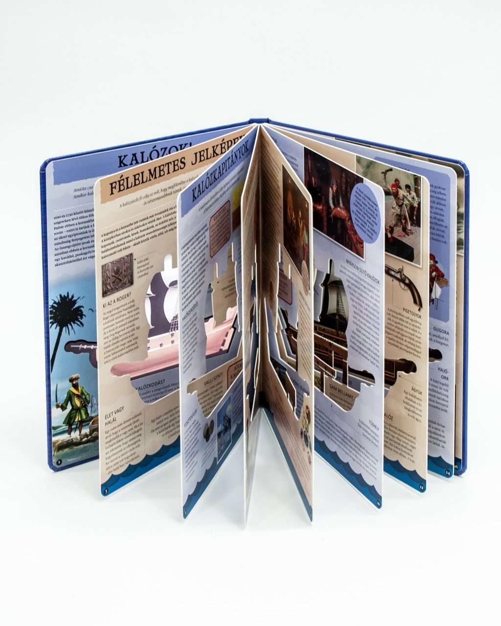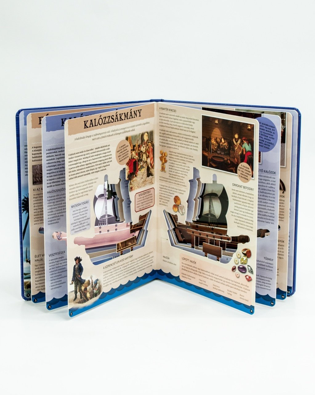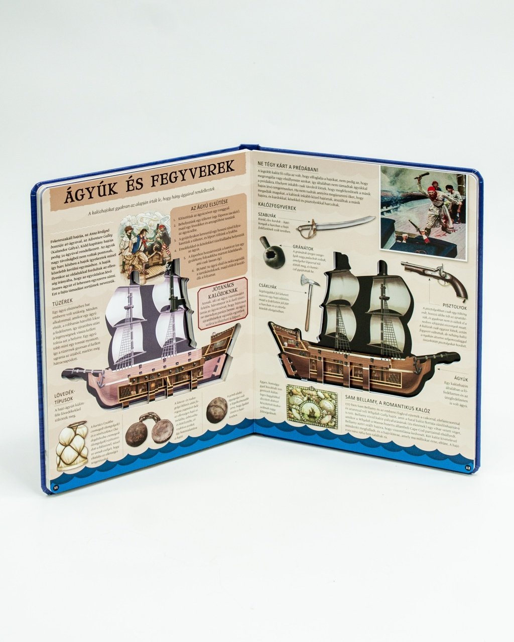 Fedezd fel a kalózkodás aranykorát! Légy részese egy rettenthetetlen kalandnak, miközben lépésről lépésre fedezed fel egy klasszikus kalózhajó minden zegét-zugát! A 3D-modell segít alaposabban feltárni a hajó belsejét, az illusztrációk és részletes leírások pedig átfogó képet nyújtanak a tengeri rablók életformájáról, a kalózkodás aranykorának legfontosabb eseményeiről és személyiségeiről.