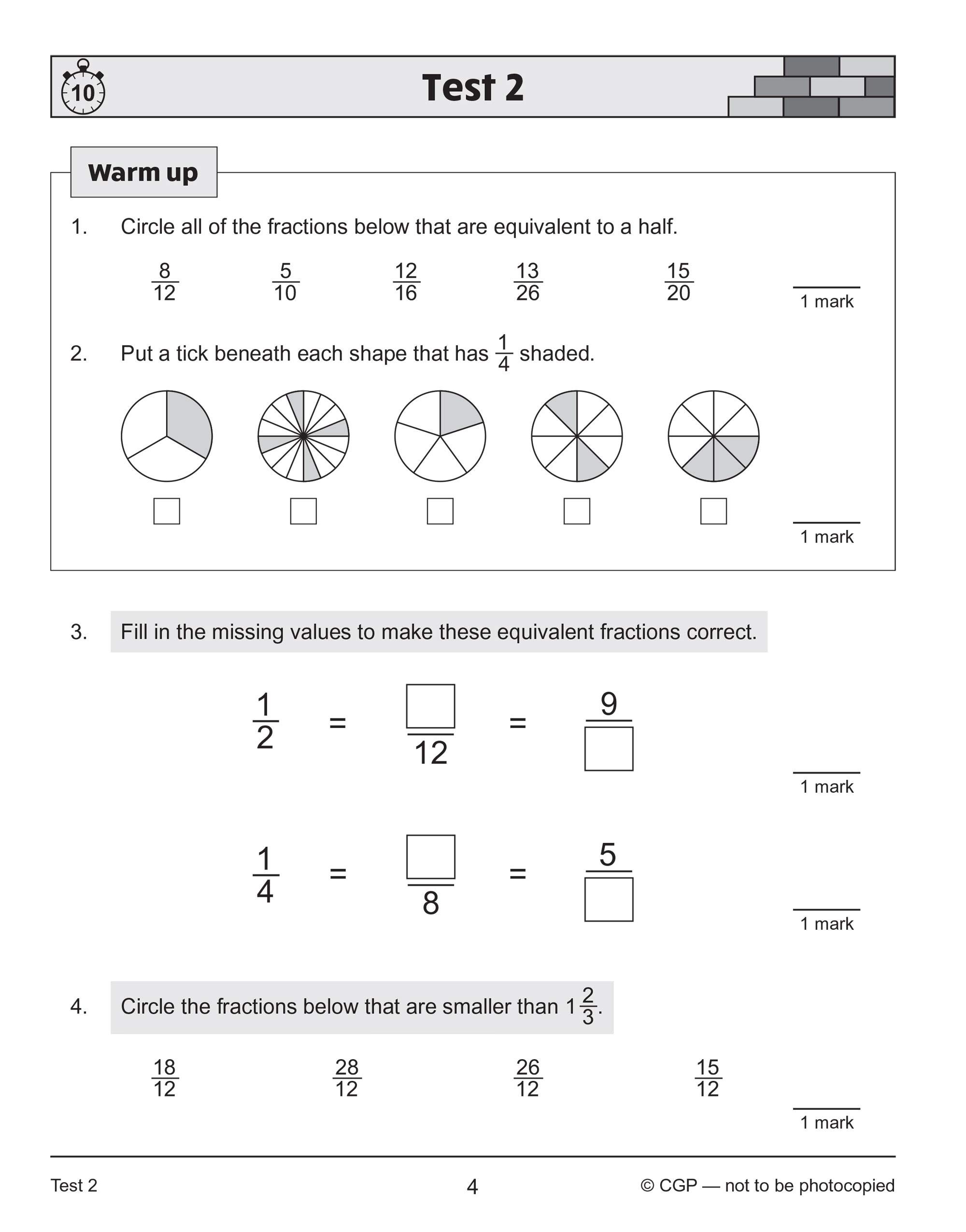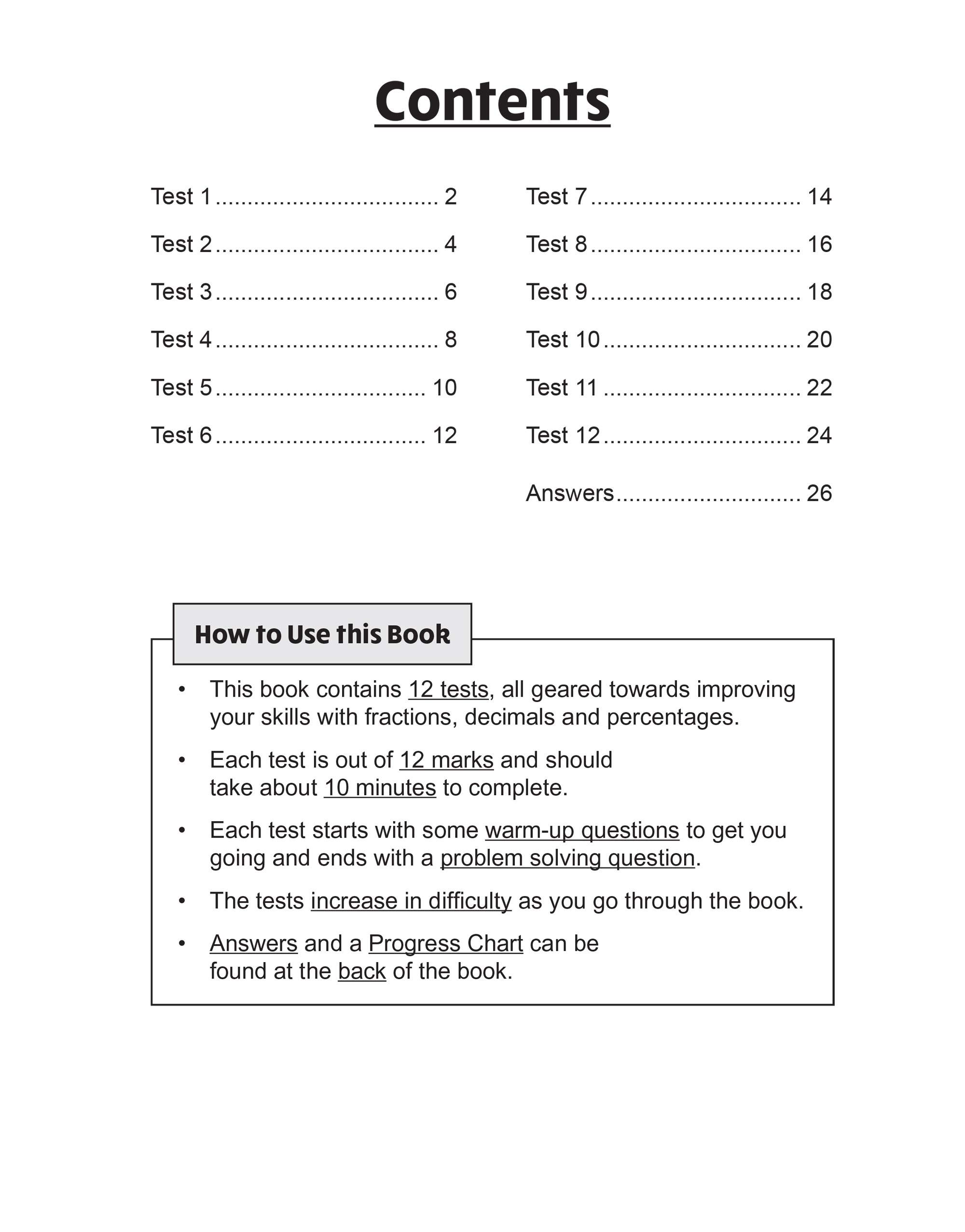 If you're looking for quick-fire, topic-targeting Maths practice, CGP's 10-Minute Topic Boosters are exactly what you need! This book contains 12 bite-sized tests covering Fractions, Decimals & Percentages. It's ideal for pupils who are working at the expected standard but want a bit of a boost in this area. Tests begin with a selection of warm-up questions to test the basics, then get progressively more difficult throughout. Full worked answers and score boxes are included for easy marking.