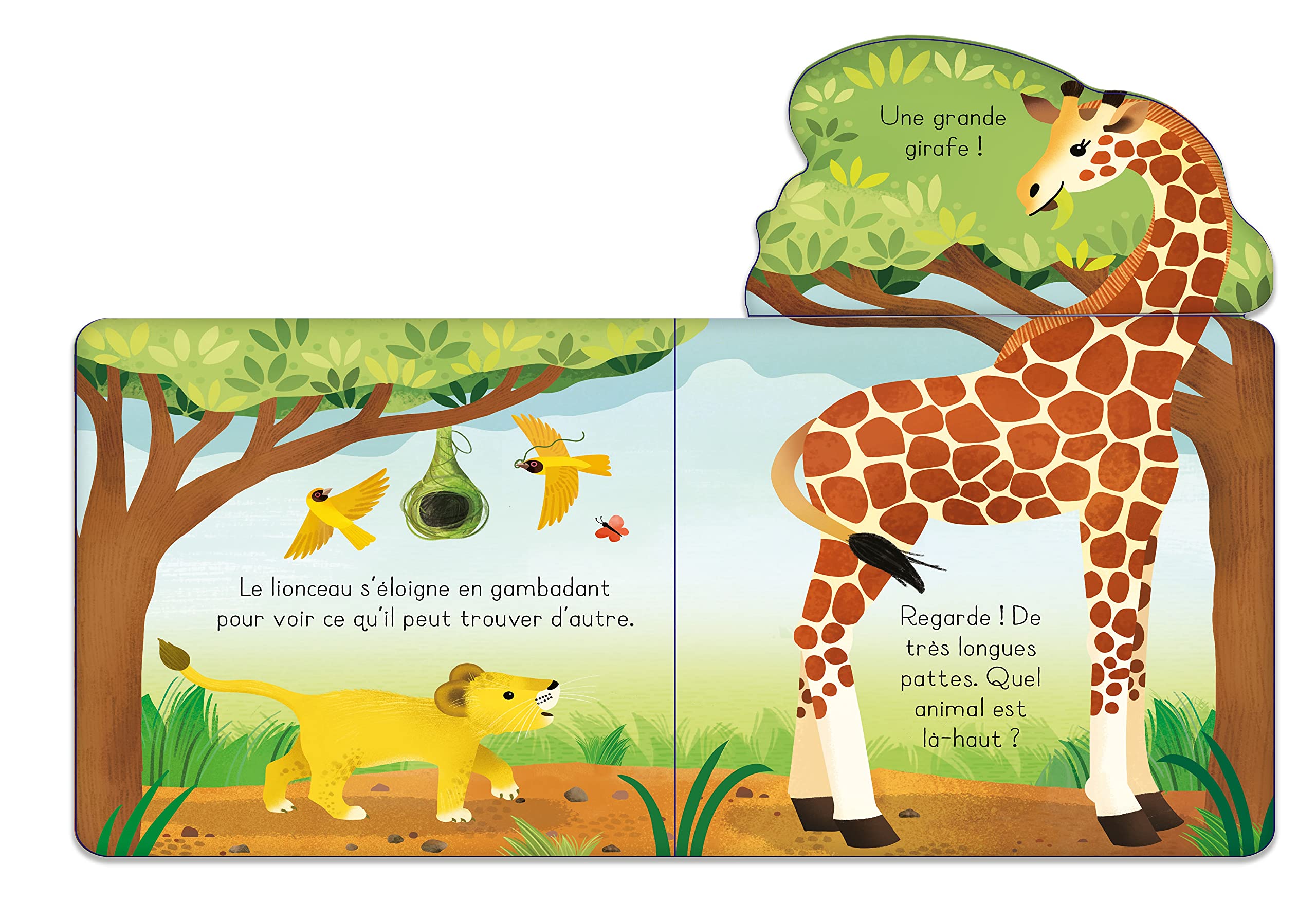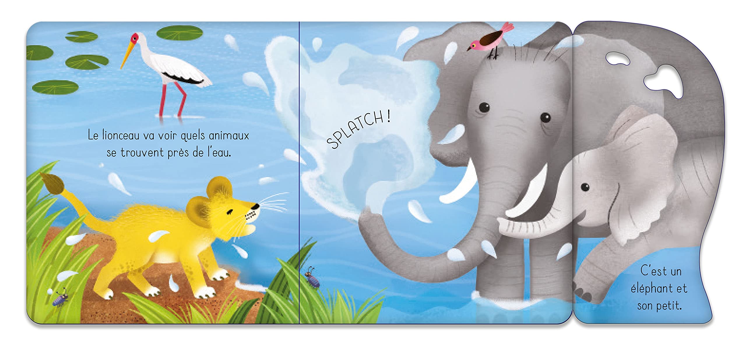 Les bébés et les très jeunes enfants auront plaisir à découvrir les animaux de la savane en compagnie d'un petit lion très curieux. Au fil des rabats à soulever de ce livre plein de charme, ils feront la connaissance d'une grande girafe, d'un éléphanteau qui fait jaillir de l'eau et d'un drôle de phacochère. Mon petit livre à rabats : toute une série de livres à collectionner, avec des rabats solides bien adaptés aux petites mains, conçus pour favoriser le développement de la motricité fine des jeunes enfants.