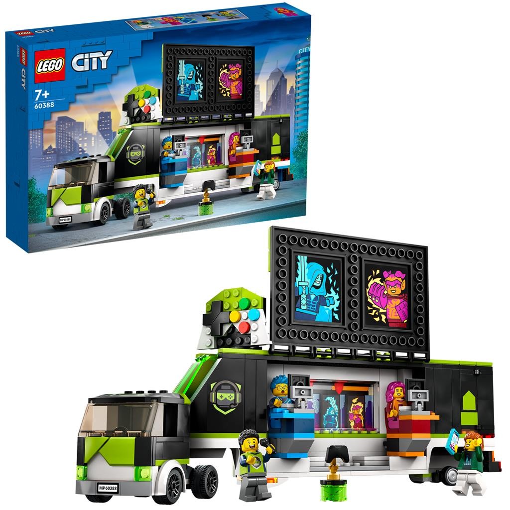 - Set de joc cu turneu de gaming – The LEGO® City Camion pentru turneul de gaming (60388) este plin cu echipamente pentru organizarea unor competiții de gaming imaginare