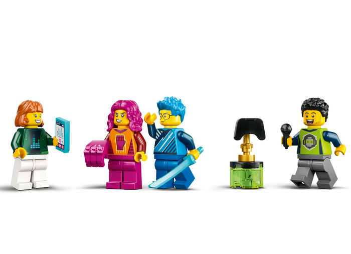 - Accesorii pentru minifigurine – Accesoriile LEGO® din acest set includ un trofeu pentru câștigător, microfon, telefon mobil și articole de gaming, inclusiv pumni mari și o sabie