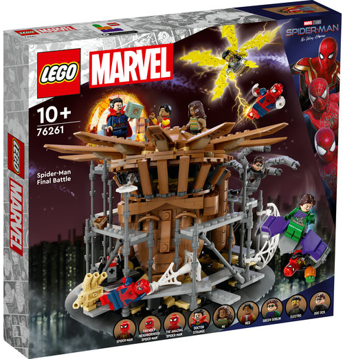 LEGO® Marvel Lupta finală a Omului Păianjen (76261) reconstituie confruntarea spectaculoasă din filmul Omul-Păianjen: Niciun drum spre casă, produs de Marvel Studios. Plin cu personaje emblematice și multă acțiune cu lansare de pânze de păianjen, acest set care îl celebrează pe faimosul supererou va captiva fanii de 10 ani și mai mari.