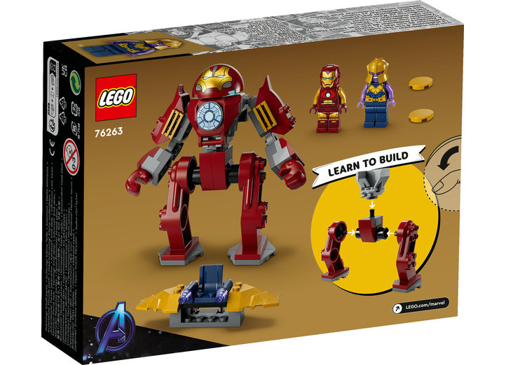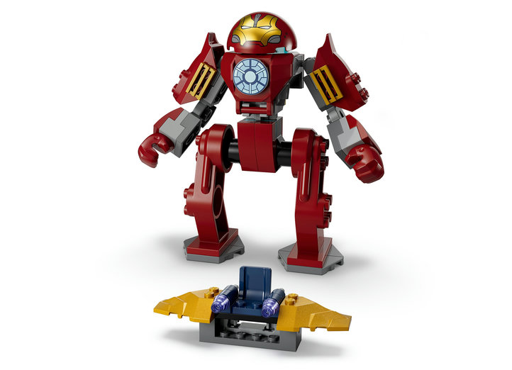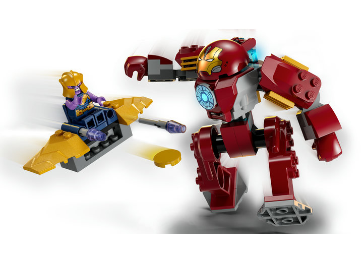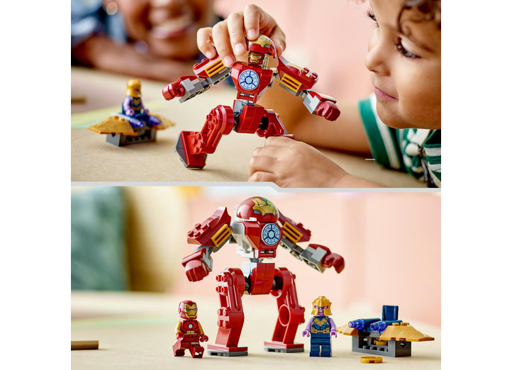 Bazat pe producţia Marvel Studios Răzbunătorii: Războiul infinitului, acest set îi pune faţă în faţă pe supereroul Iron Man şi pe robotul său cu superticălosul Thanos şi avionul său. Robotul Hulkbuster este complet articulat şi include un loc pe care să stea aşezată minifigurina Iron Man. Avionul are ataşat un lansator de discuri şi un scaun pentru minifigurina Thanos. În interiorul cutiei, fiecare pungă de cărămizi conţine un model complet de personaj pe care copiii îl pot asambla rapid pentru a începe joaca. O poveste ilustrată în culori serveşte drept ghid de construcţie şi joacă, iar 2 cărămizi pentru începători reprezentând picioarele robotului simplifică construcţia. Pentru mai multă distracţie digitală, constructorii pot apropia, roti seturile în 3D şi-şi pot monitoriza progresul folosind aplicaţia distractivă şi intuitivă LEGO Builder.