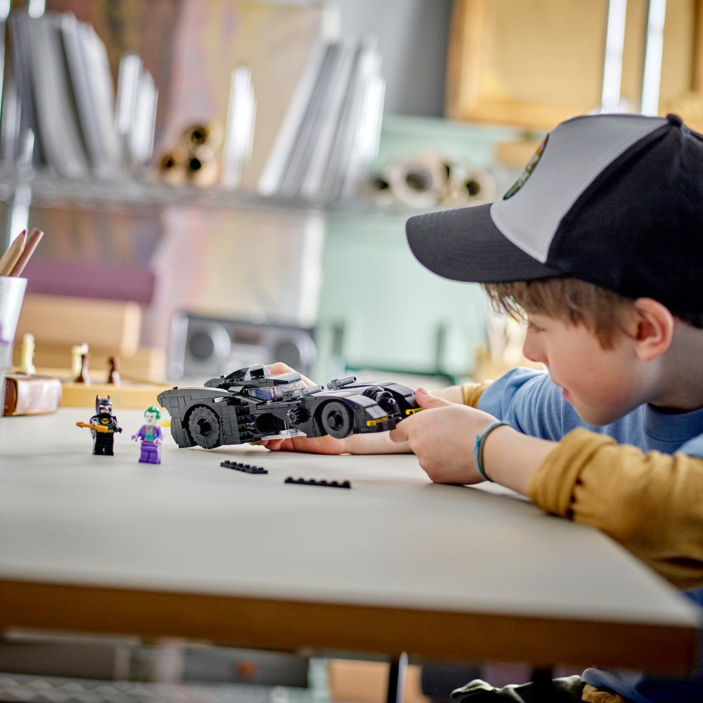 Acest set cu Batmobil dă viaţă întregii acţiuni captivante din clasicul film din 1989. Un acoperiş detaşabil oferă acces la cockpitul vehiculului, unde există spaţiu pe locul şoferului pentru o minifigurină. Când copiii rotesc un buton pe partea laterală a maşinii, 2 explozoare integrate se ridică, gata să fie folosite. Un element flacără ataşat ţevii de eşapament se învârte pe măsură ce Batmobilul se mişcă, iar portbagajul care se deschide oferă spaţiu de depozitare pentru un Batarang™, un harpon şi cătuşe. Setul include şi 2 minifigurine (Batman şi Joker), plus accesorii precum o cască şi o pelerină. Pentru mai multă distracţie digitală, constructorii pot apropia, roti modelele în 3D şi-şi pot monitoriza progresul folosind aplicaţia distractivă şi intuitivă LEGO Builder.