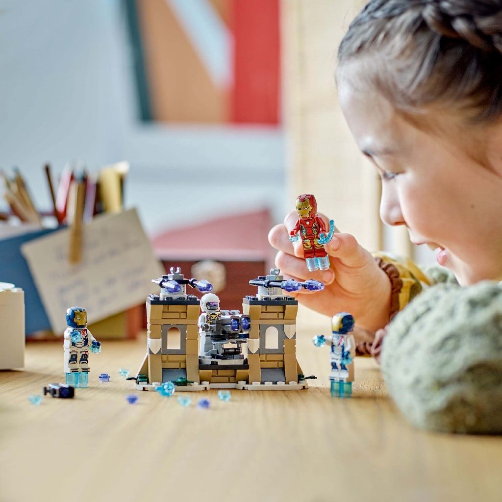 Setul include 4 minifigurine: Iron Man, 2 Legionari de Fier şi un Soldat Hydra. Iron Man construibil are o vizieră care se deschide şi ţine în mână un power blaster. Soldatul Hydra are un lansator de piroane. Minifigurinele includ cărămizi albastre transparente pentru a da impresia că zboară.