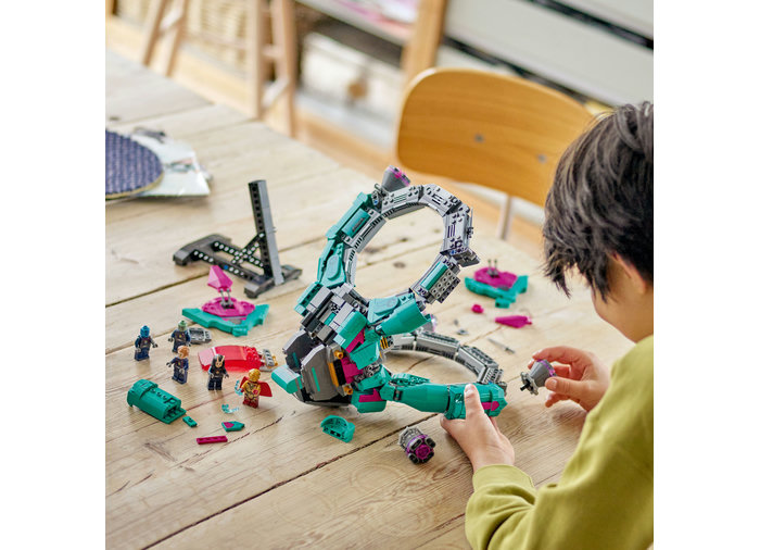Această navă spațială construibilă este pe atât de uimitoare pe cât arată. Are o carlingă cu deschidere și spațiu pentru 3 minifigurine, un compartiment secret pentru o altă minifigurină, magazii pentru arme și accesorii și 2 nave mai mici care se desprind de nava-mamă. Setul include 5 minifigurine înfățișând personaje din film: Mantis, Drax, Star-Lord, Nebula și Adam Warlock. Nava poate fi ușor luată în mâini pentru a „goni” prin spațiu. Când acțiunea ia o pauză până a doua zi, nava arată grozav expusă pe stativul ei în camera oricărui copil. Pentru a adăuga experienței o dimensiune digitală, copiii pot folosi aplicația LEGO Builder pentru a apropia și roti modelele în 3D, salva seturi și monitoriza progresul construcției.
