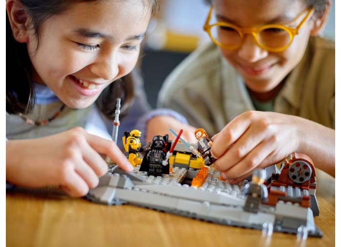 - Set de luptă între Obi-Wan Kenobi și Darth Vader (75334) – Recreează un duel memorabil cu săbii laser din Star Wars: Obi-Wan Kenobi cu acest set cu jucărie de construcție plin de acțiune LEGO® Star Wars™
