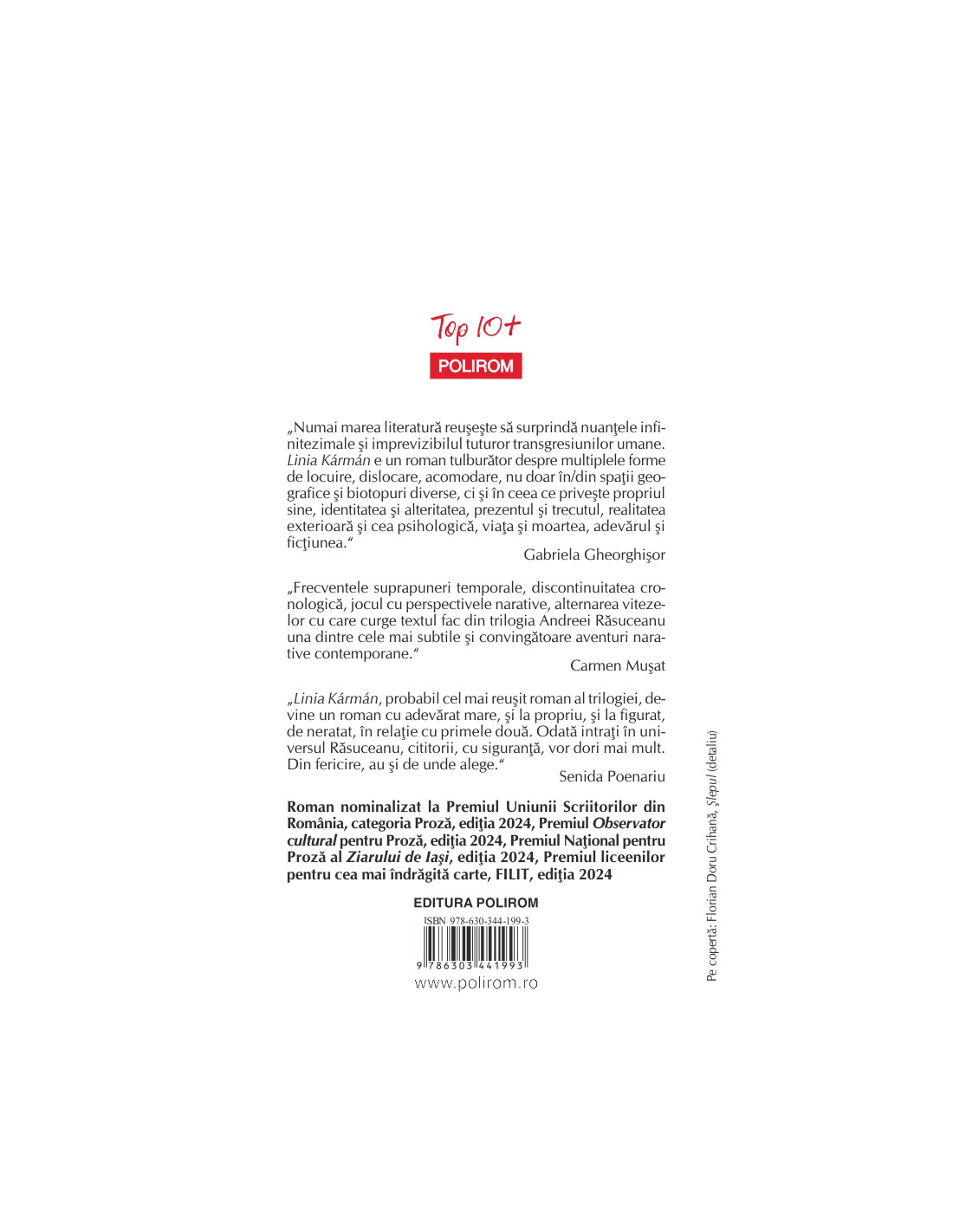 „Linia Kármán, probabil cel mai reuşit roman al trilogiei, devine un roman cu adevărat mare, şi la propriu, şi la figurat, de neratat, în relaţie cu primele două. Odată intraţi în universul Răsuceanu, cititorii, cu siguranţă, vor dori mai mult. Din fericire, au şi de unde alege.” (Senida Poenariu)