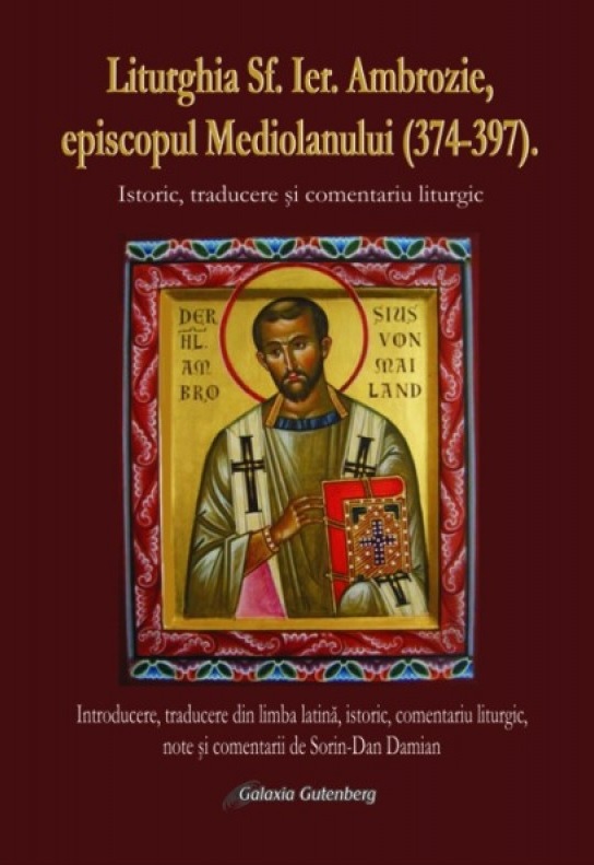 Sf. Ier. Ambrozie, episcopul Mediolanului (374-397) este unul dintre cei mai importanti Parinti ai Bisericii nedespartite. Bogata sa activitate pastorala si teologica a fost recunoscuta in cel mai inalt grad de catre Biserica si prin faptul ca, Biserica Apusului il considera unul dintre cei mai importanti Doctori ai ei, alaturi de Fer. Augustin, Fer. Ieronim si Sf. Grigorie cel Mare, iar Biserica Rasaritului vede in el un mare luptator pentru apararea credintei, fiind chiar bun prieten cu Sf. Ier. Vasile cel Mare. Datorita acestui motiv, am decis sa traduc Liturghia Sf. Ier. Ambrozie in limba romana, dar si pentru a completa un gol existent in literatura liturgica de la noi din tara, aceasta traducere fiind prima in limba romana.
