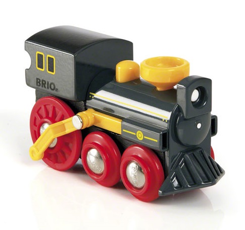 Împingeți această locomotivă înainte și vedeți cum se mișcă pistoanele la fel cum o făceau motoarele reale ale trenului cu abur pe vremuri!