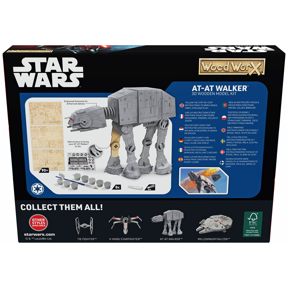 Wood WorX - Star Wars - AT-AT Walker este setul de constructie DIY din lemn, o detaliata recreare a celebrului „AT-AT Walker” din filmul „Star Wars: Imperiul contraataca”, ideal pentru fanii din lumea Star Wars.