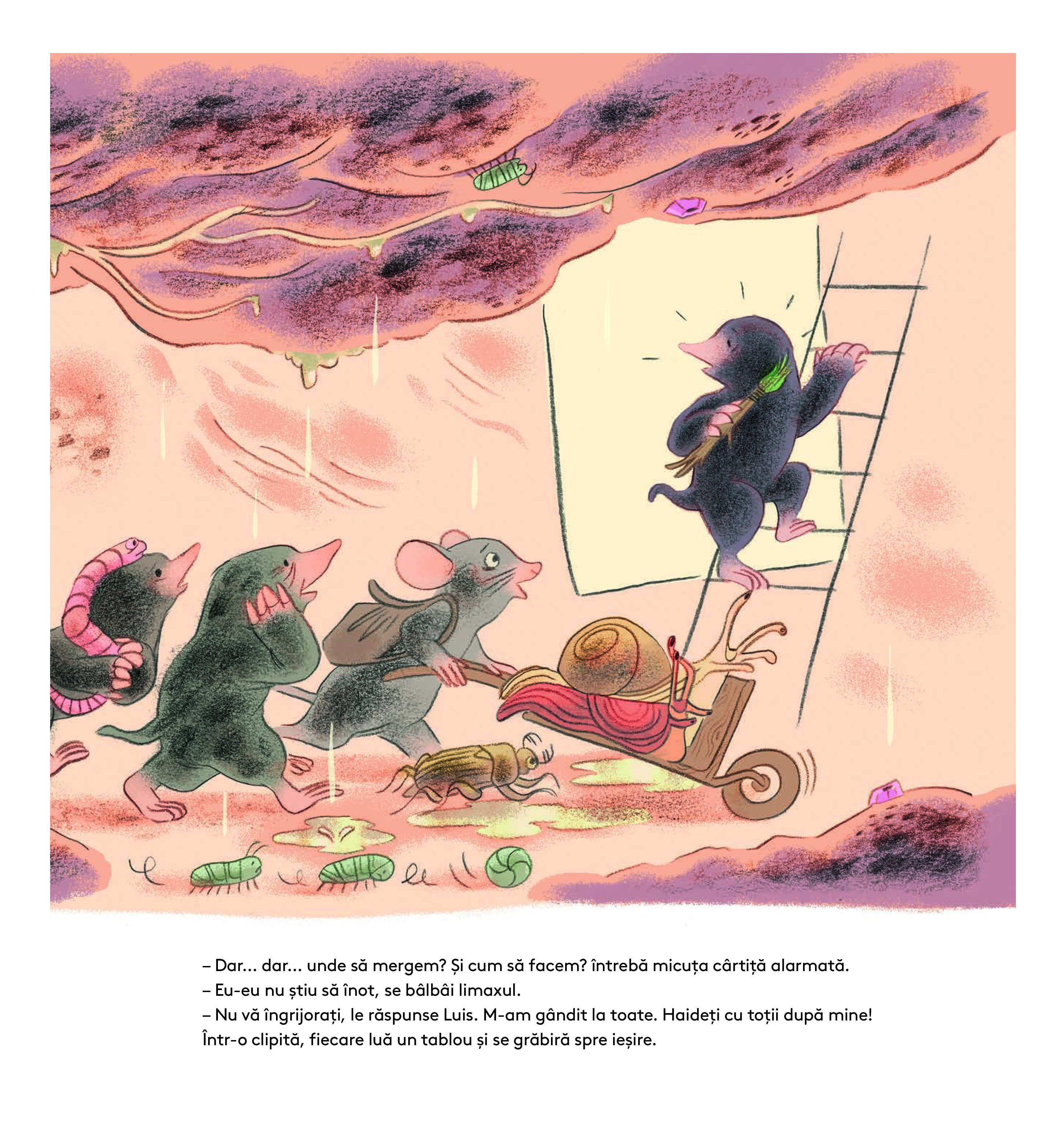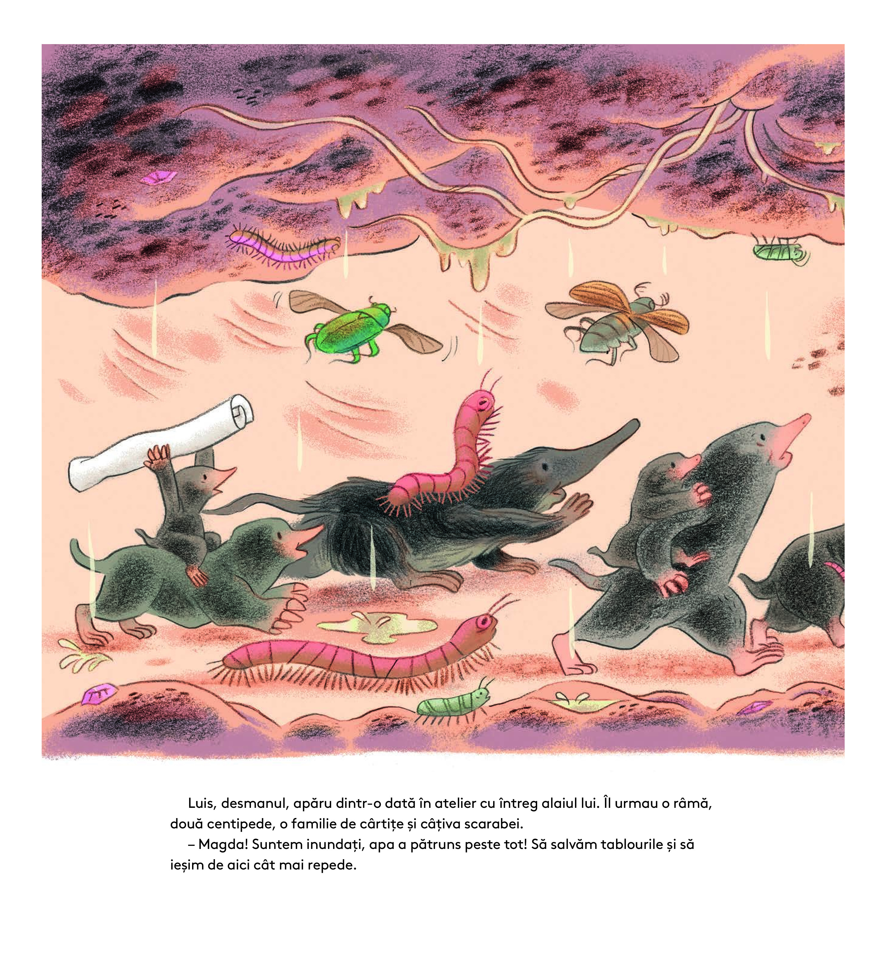 E panică generală! Luis, desmanul, se îngrijește să-i ducă pe toți la adăpost. Ieșind din galerii, doar Magda se minunează.
