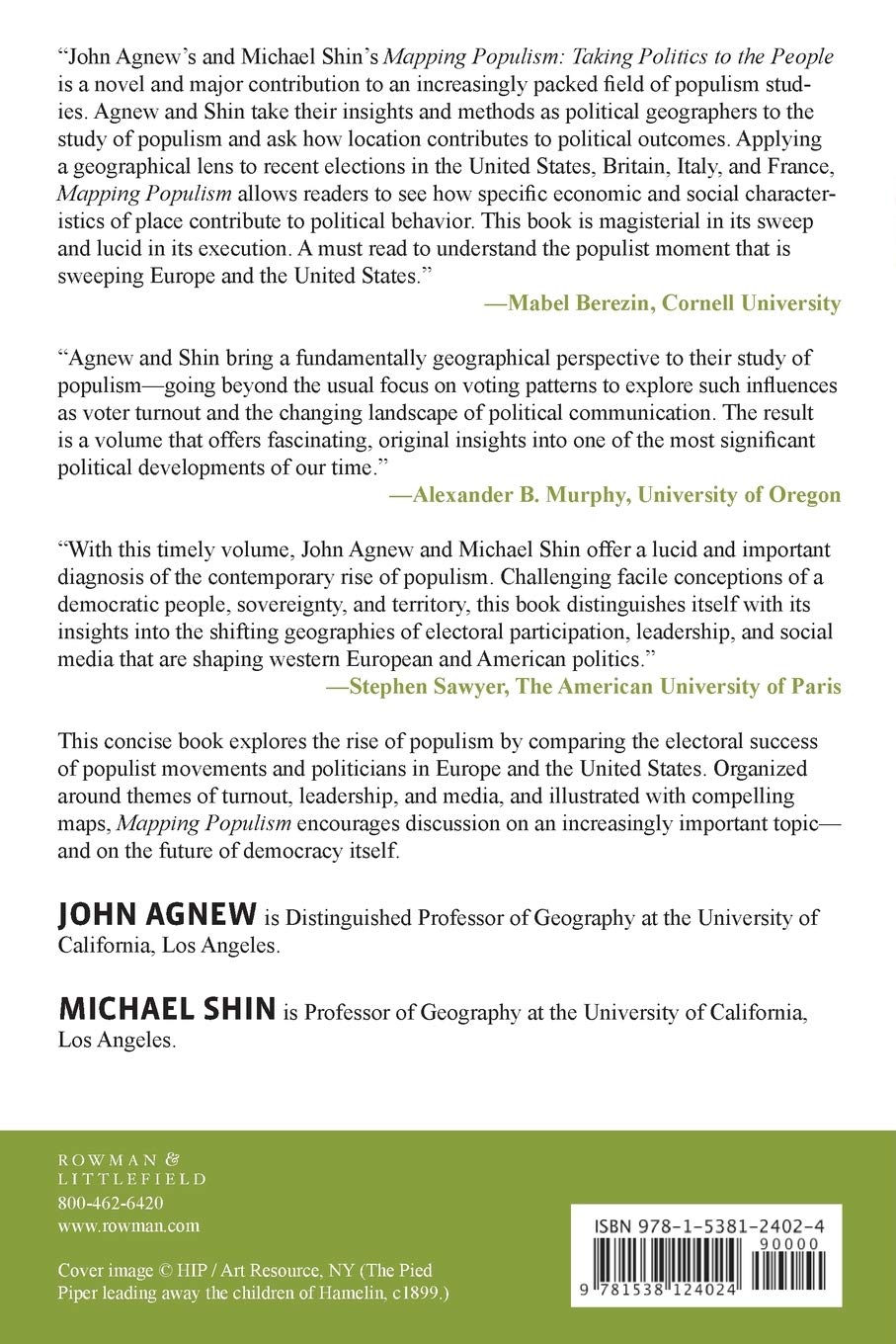 Exploring how and why populism succeeded, John Agnew and Michael Shin consider the reasons for the Brexit vote, who voted-and who did not vote -for Donald Trump and Marine Le Pen, and the rise of an Italian populist government, Through comparative geographical analyses, the authors literally and figuratively map the rise of populism across the United Kingdom, the United States, France, and Italy. Geography tells us who the people are who have supported populism and the limits and possibilities of its claim to represent all of "the people," wherever they are. Organized around recurring central themes of turnout, leadership, and media, and using compelling maps, their book encourages thought and discussion on an increasingly important topic-and on the future of democracy itself.
