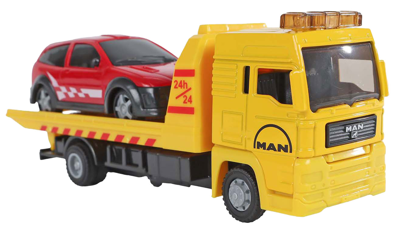 Camion MAN de asistență rutieră cu mașină.