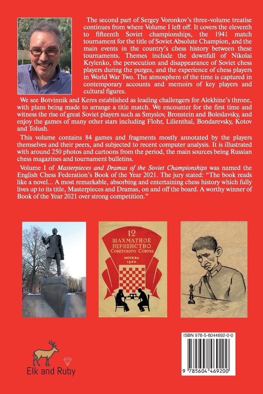 The second part of Sergey Voronkov's three-volume treatise continues from where Volume I left off. It covers the eleventh to fifteenth Soviet championships, the 1941 match tournament for the title of Soviet Absolute Champion, and the main events in the country's chess history between these tournaments. Themes include the downfall of Nikolai Krylenko, the persecution and disappearance of Soviet chess players during the purges, and the experience of chess players in World War Two.