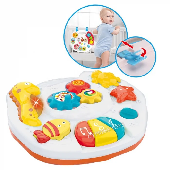 Masuta Educativa 2in1 cu Lumini si Sunete pentru Bebelusi contine o varietate de jocuri care il ajuta pe micut sa isi dezvolte inteligenta.