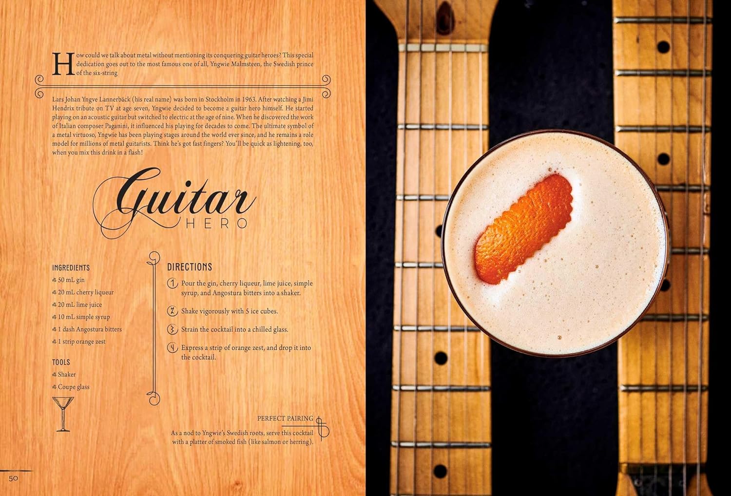 Guarantee that your drinks rock as hard as your playlist with Metal Cocktails! This cocktail book has drinks inspired by 50 years of bass-bursting, headbanging rock bands.