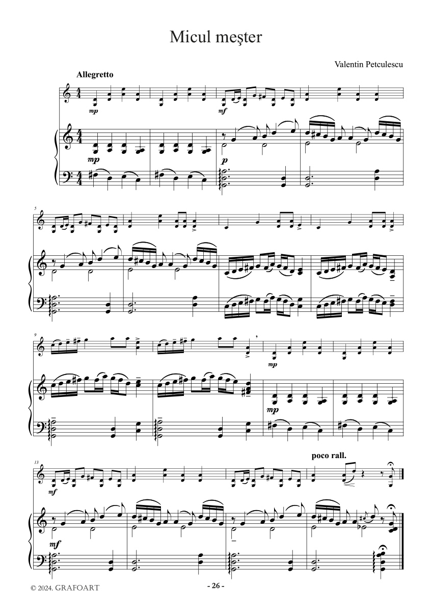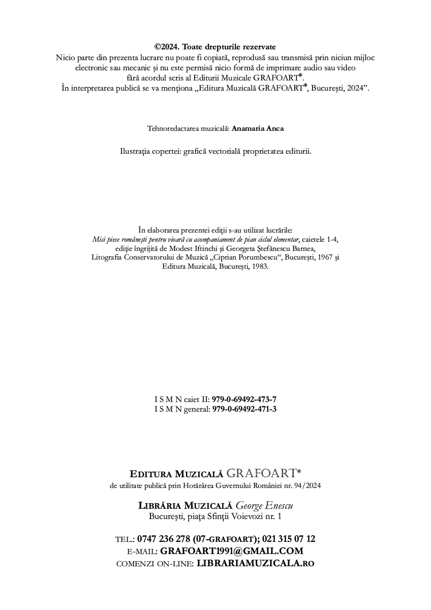 Mici piese romanesti pentru vioara cu acompaniament de pian - Caietul II