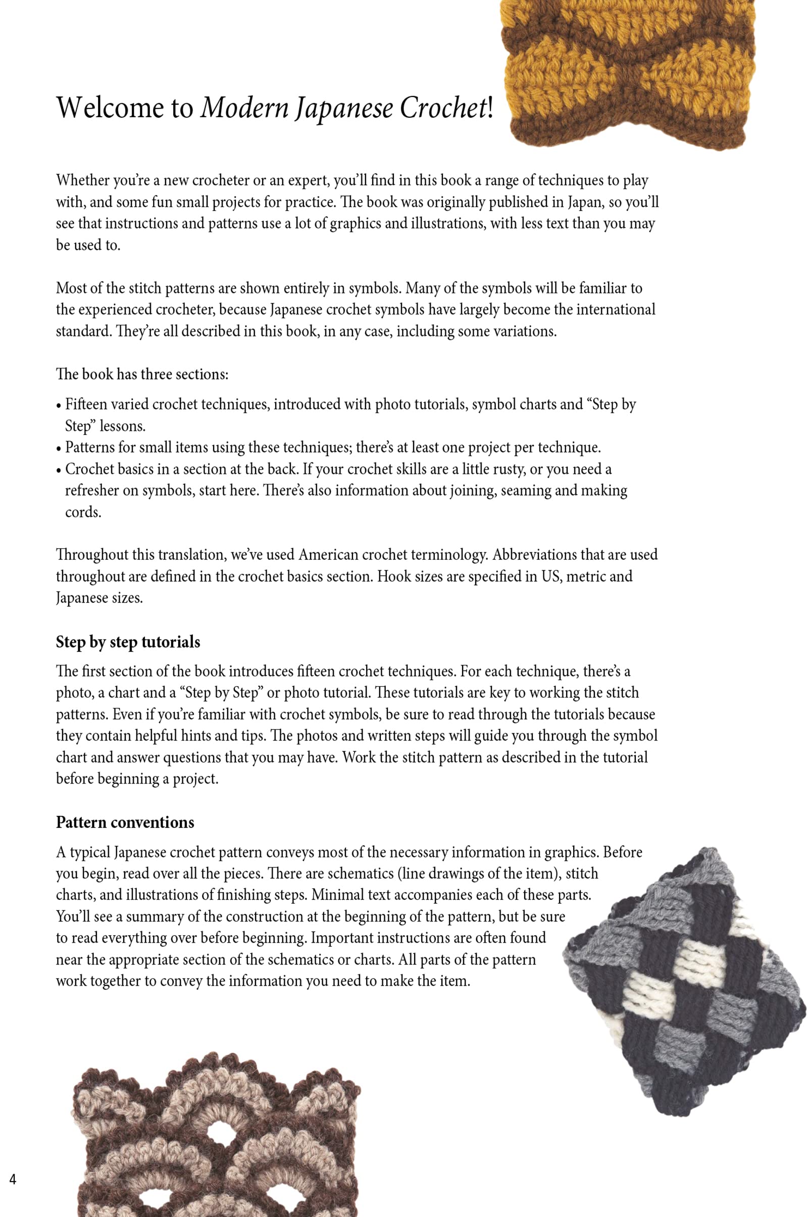 The introduction by Gayle Roehm explains how Japanese crochet diagrams work, allowing you to stitch these fantastic patterns and projects easily. A section on stitch techniques walks you through the basic stitches, adding and decreasing, binding, and finishing.