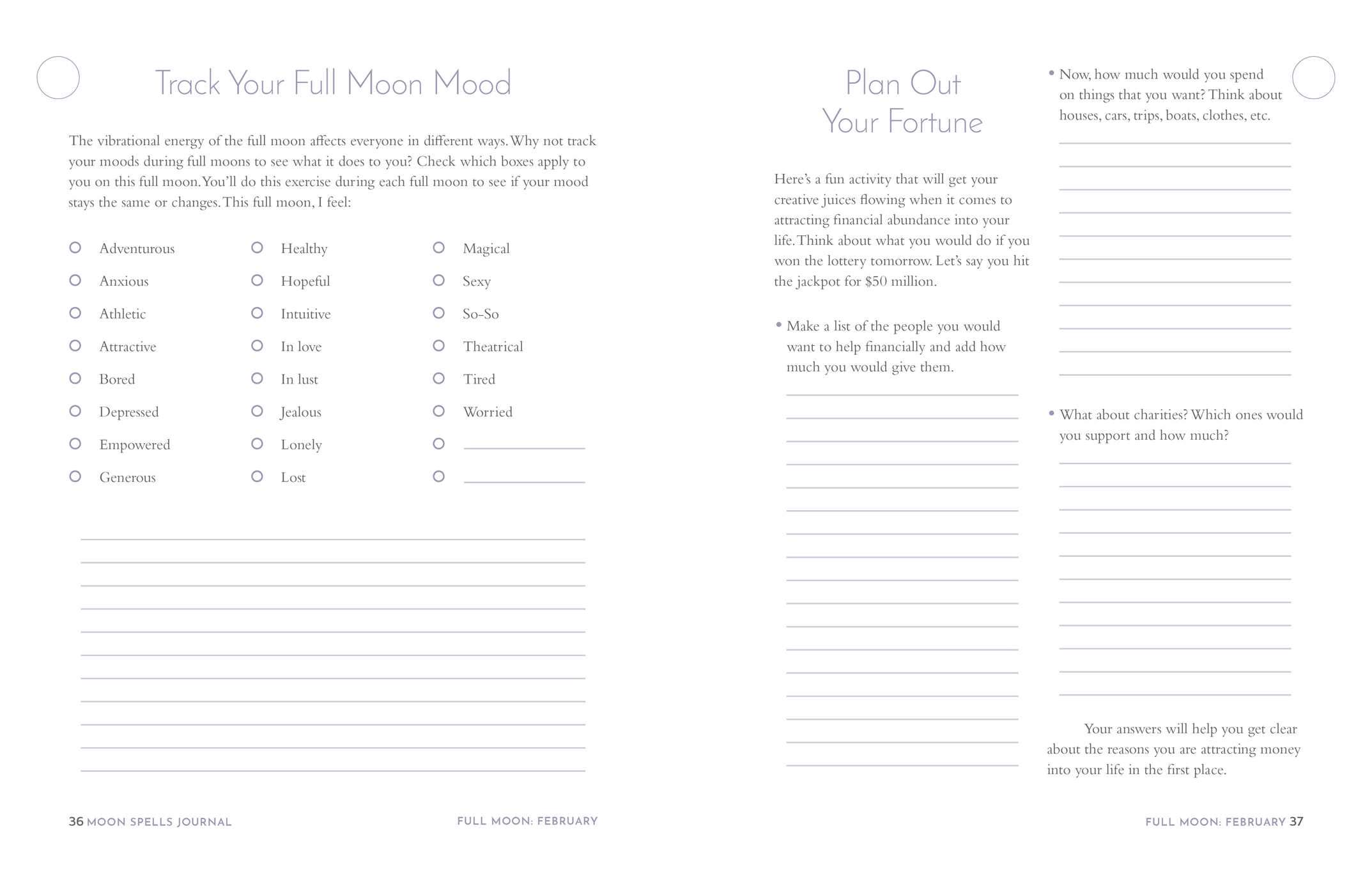 Within the pages of The Moon Spells Journal, you will find out how to harness strength from the moon all year round! Every month is devoted to a specific aspiration, and every phase of the moon speaks to that intention. Moon expert and author of Moon Spells Diane Ahlquist, offers prompts, spells, and questions for you to ponder during each phase of the moon's cycle. From embracing new beginnings during the New Moon to learning to release negative emotions during the Waning Moon, this guided journal is your next phase in introspection.