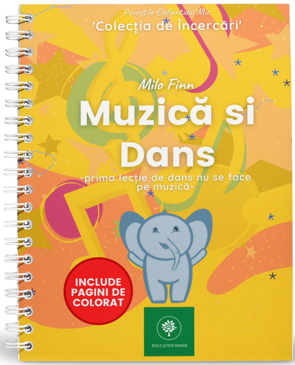 Muzica si Dans ilustreaza o poveste in care Mic, asa cum stim din prima carte “Povestile Elefantului Mic” este indragostit de dans si isi ia inima in dinti spunandu-le parintilor ca si-ar dori sa ia lectii de dans.