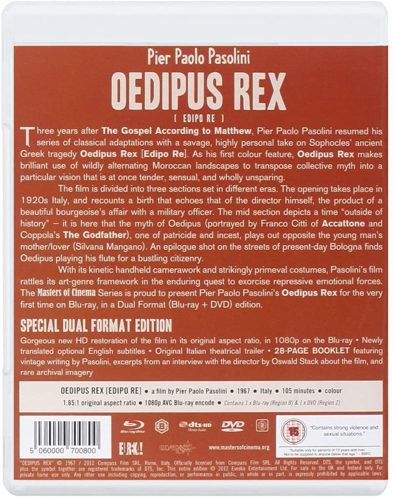 With its kinetic handheld camerawork and strikingly primeval costumes, Pasolini's film rattles its art-genre framework in the enduring quest to exorcise repressive emotional forces. The Masters of Cinema Series is proud to present Pier Paolo Pasolini's Oedipus Rex for the very first time on Blu-ray, in a Dual Format (Blu-ray + DVD) edition.