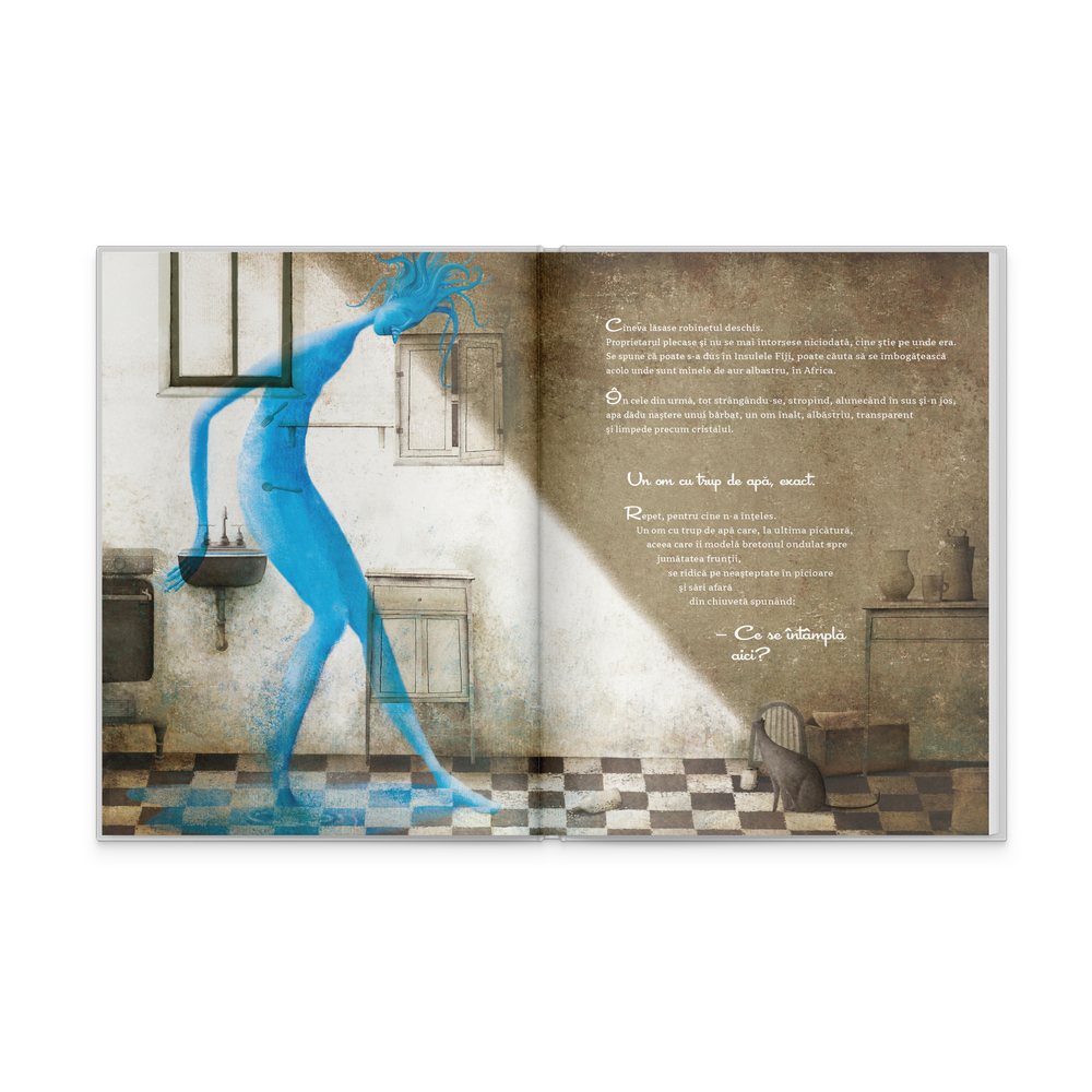 Uneori, ființa ia naștere din întâmplare. În mod miraculos, însă din întâmplare. Ghemuindu-se, frământându-se, așteptând; de la prima celulă, la ultima șuviță. Incidentalul provoacă existența, în timp ce irepetabilul angrenează individul în marea trecerea… Ei bine, din potențialitatea acestei imagini prinde contur și povestea Omului cu trup de apă. Martori la geneza, dar și la devenirea acestuia, au fost scriitorul Ivo Rosati și ilustratorul Gabriel Pacheco, în timp ce odiseea ce-l are ca protagonist s-a lăsat cuprinsă în paginile cărții „Omul cu trup de apă și fântâna sa”.