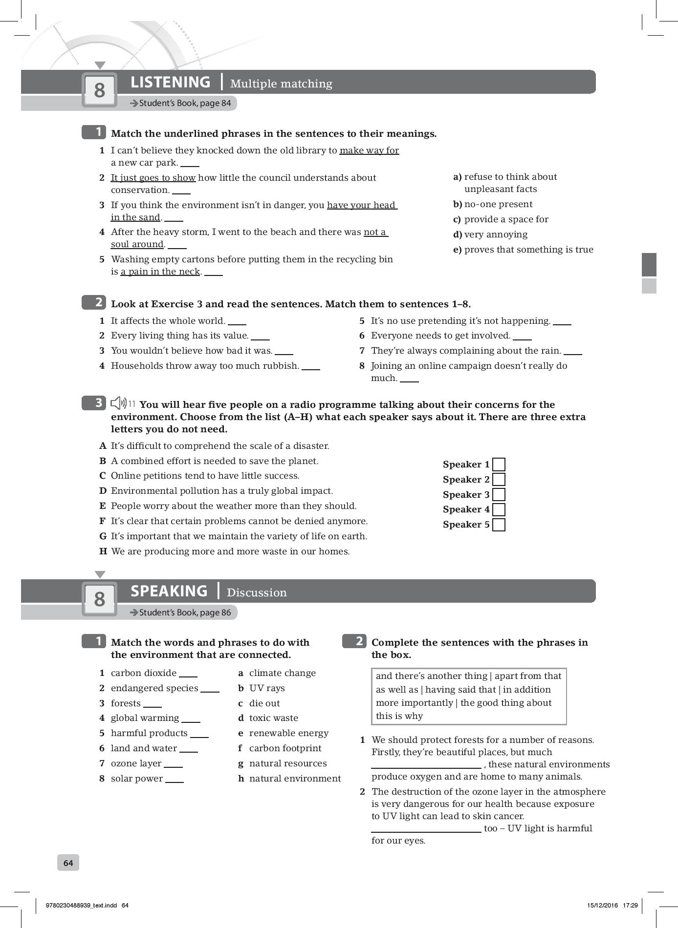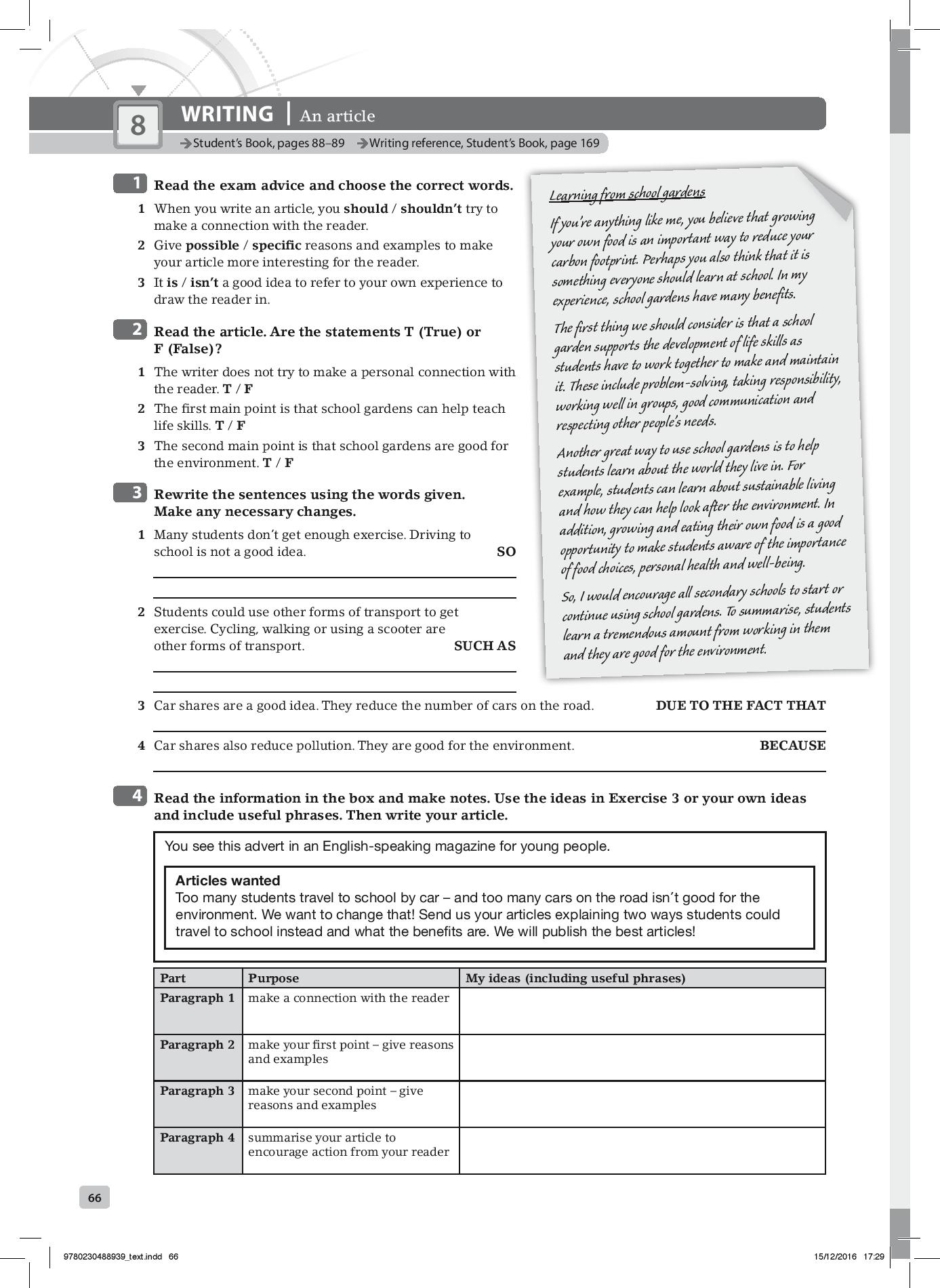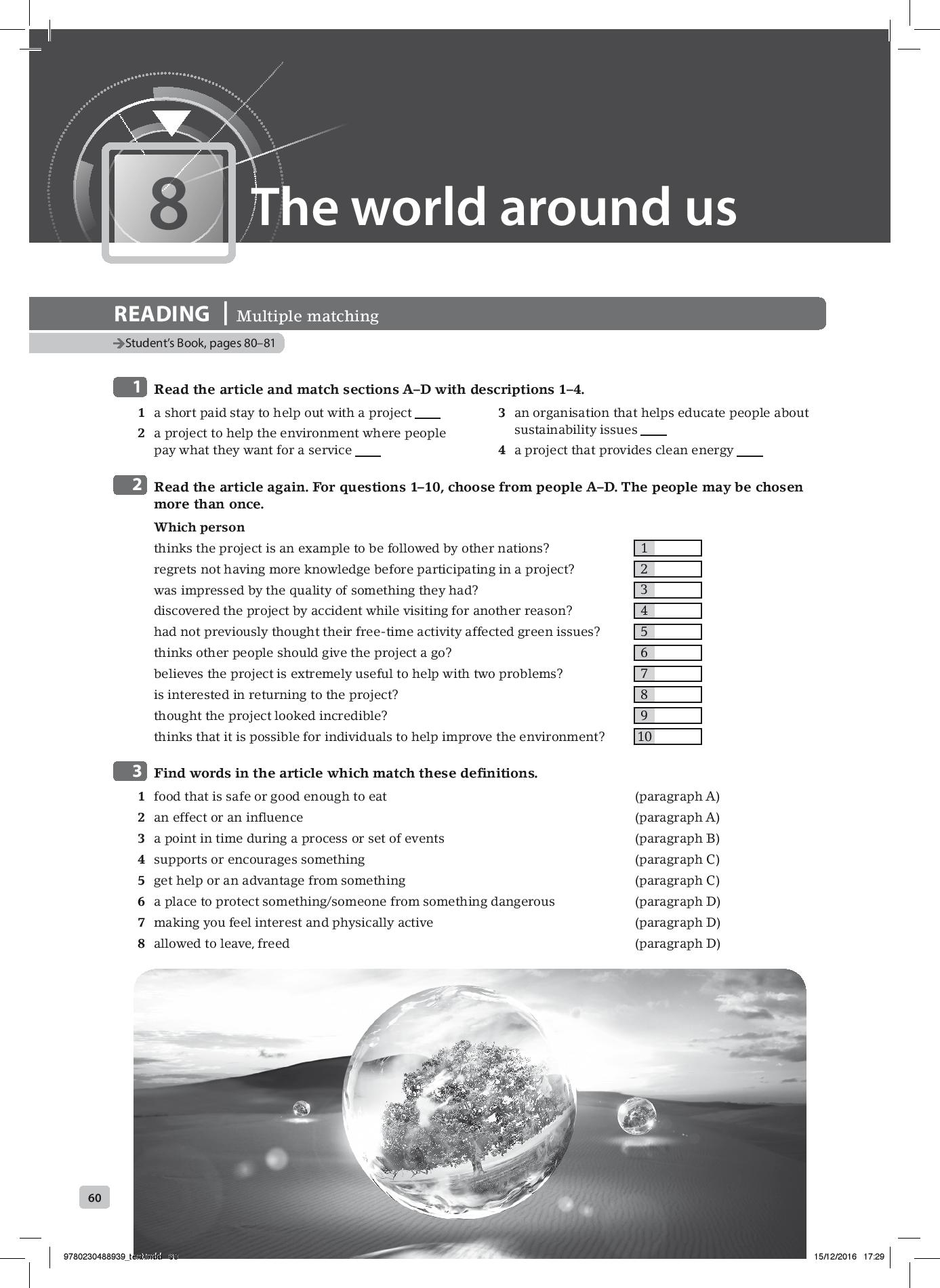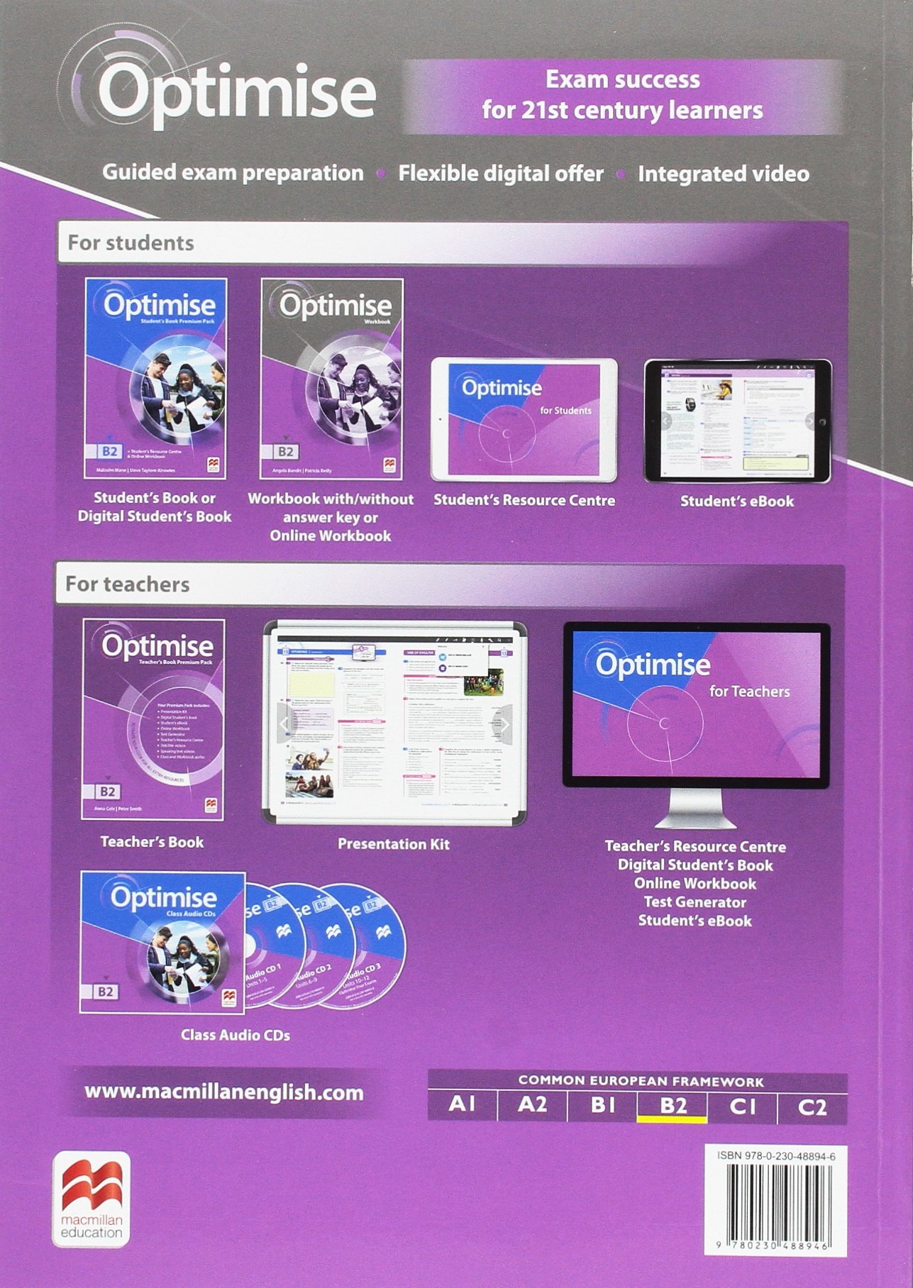 The Workbook provides further opportunities to revisit and consolidate the vocabulary, structures and skills students have already encountered in each unit. At the end of every Workbook unit, there is a Progress check. At the end of the Workbook, there is a full Optimise Practice test based on the Cambridge for Schools exam.