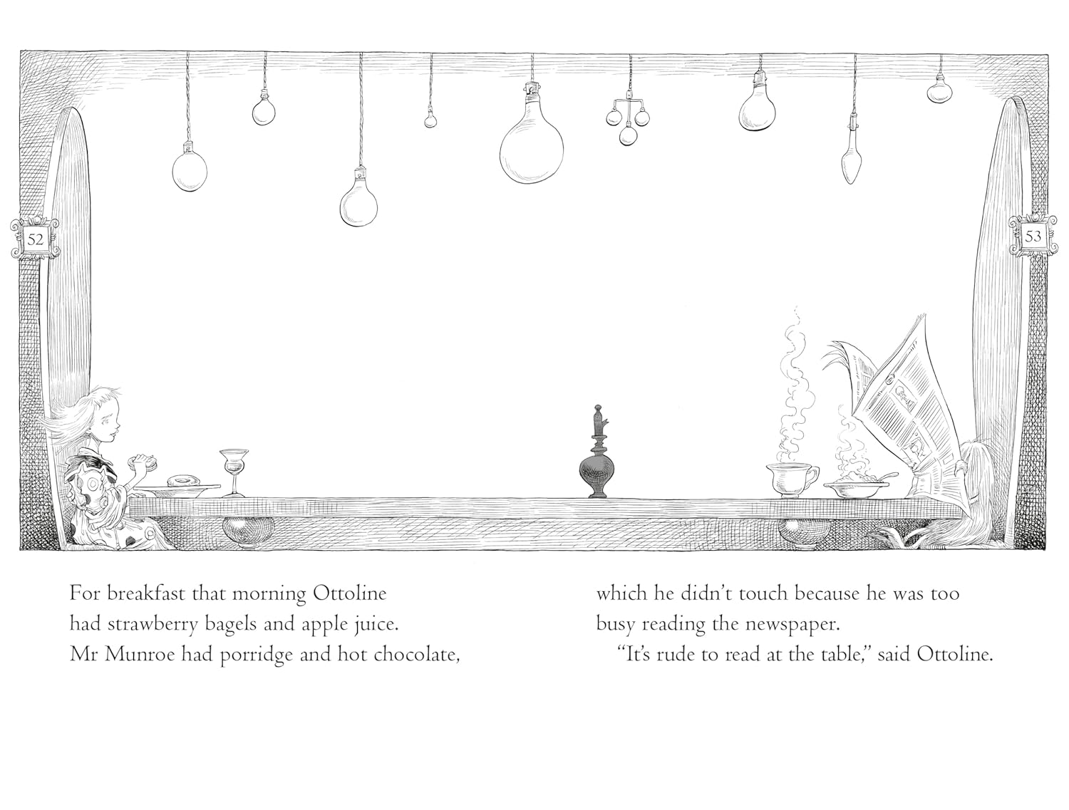 Ottoline lives in a stylish apartment in Big City with a small hairy creature called Mr Munroe. Together they look after the Brown family's eclectic collections - and dabble in a spot of detective work. So they are the first to the scene of the crime when a string of high-society dog-nappings and jewel thefts hits Big City.