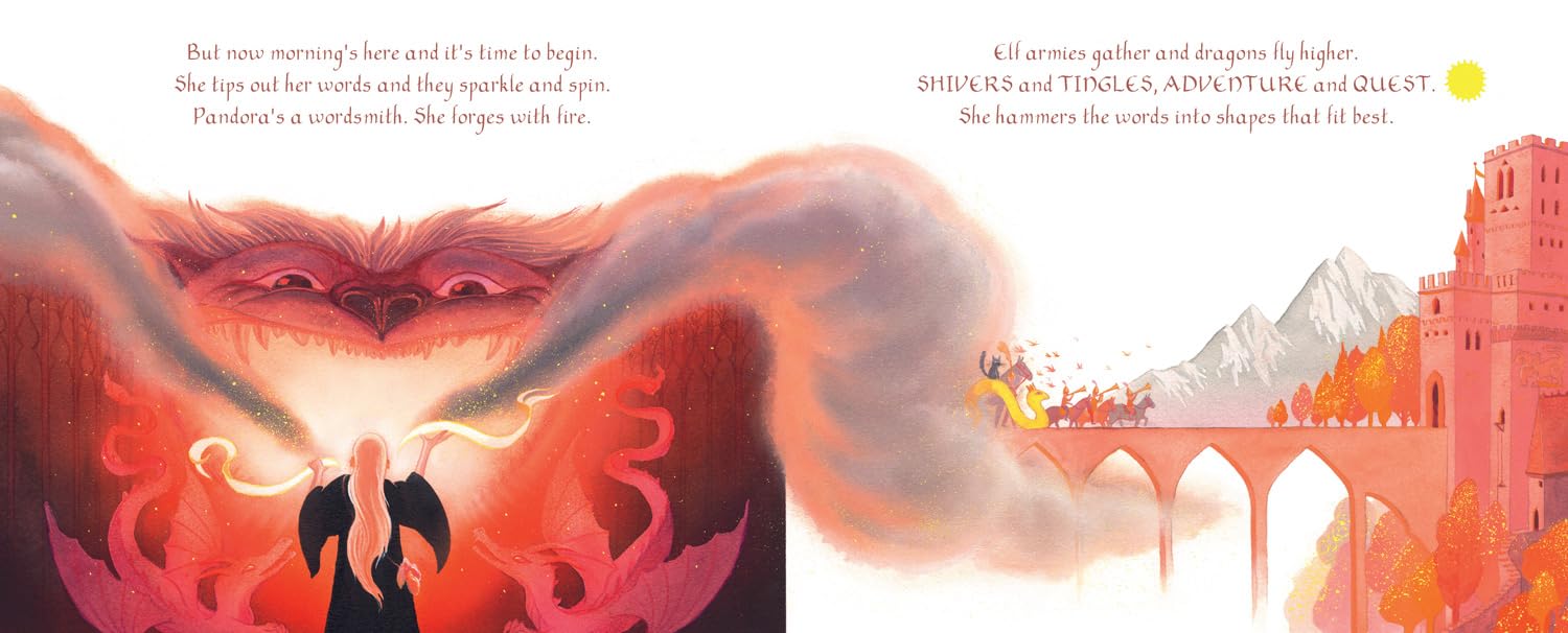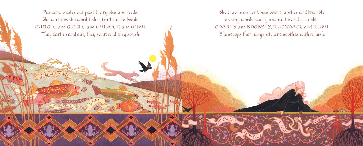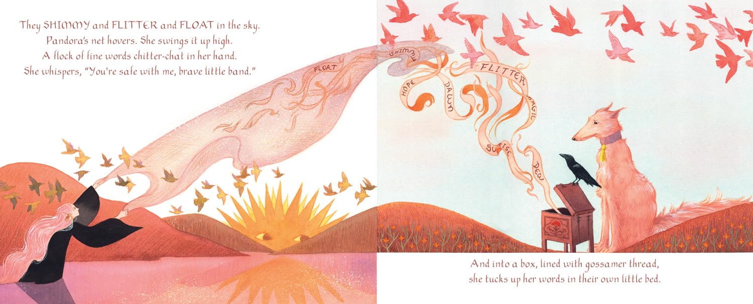 Pandora is an explorer, a collector of words (even ones that misbehave). Once she has the words she needs, she watches them flower and then forges them into the most magical stories. Friend to all the story-starved children, Pandora knows a secret: once read, a story unfurls in your heart. Enter her world and you’ll never see words in quite the same way again.