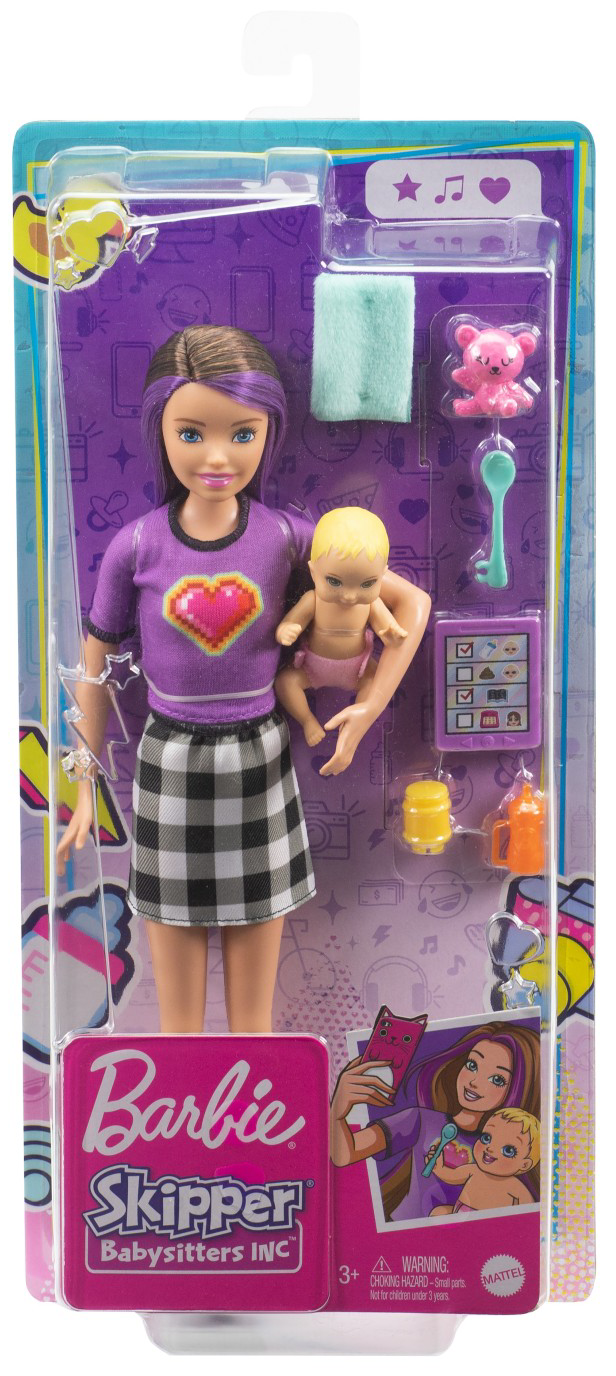 Pune in scena aventuri minunate alaturi de papusa Skipper din colectia Barbie Babysitters si bebelusul, atat de dragalas! Ai incluse si o multime de accesorii ce contribuie din plin la distractia jocului precum un scutecel detasabil, un ursulet roz, un biberon, o lingurita si altele. Acest pachet contine o papusa satena.