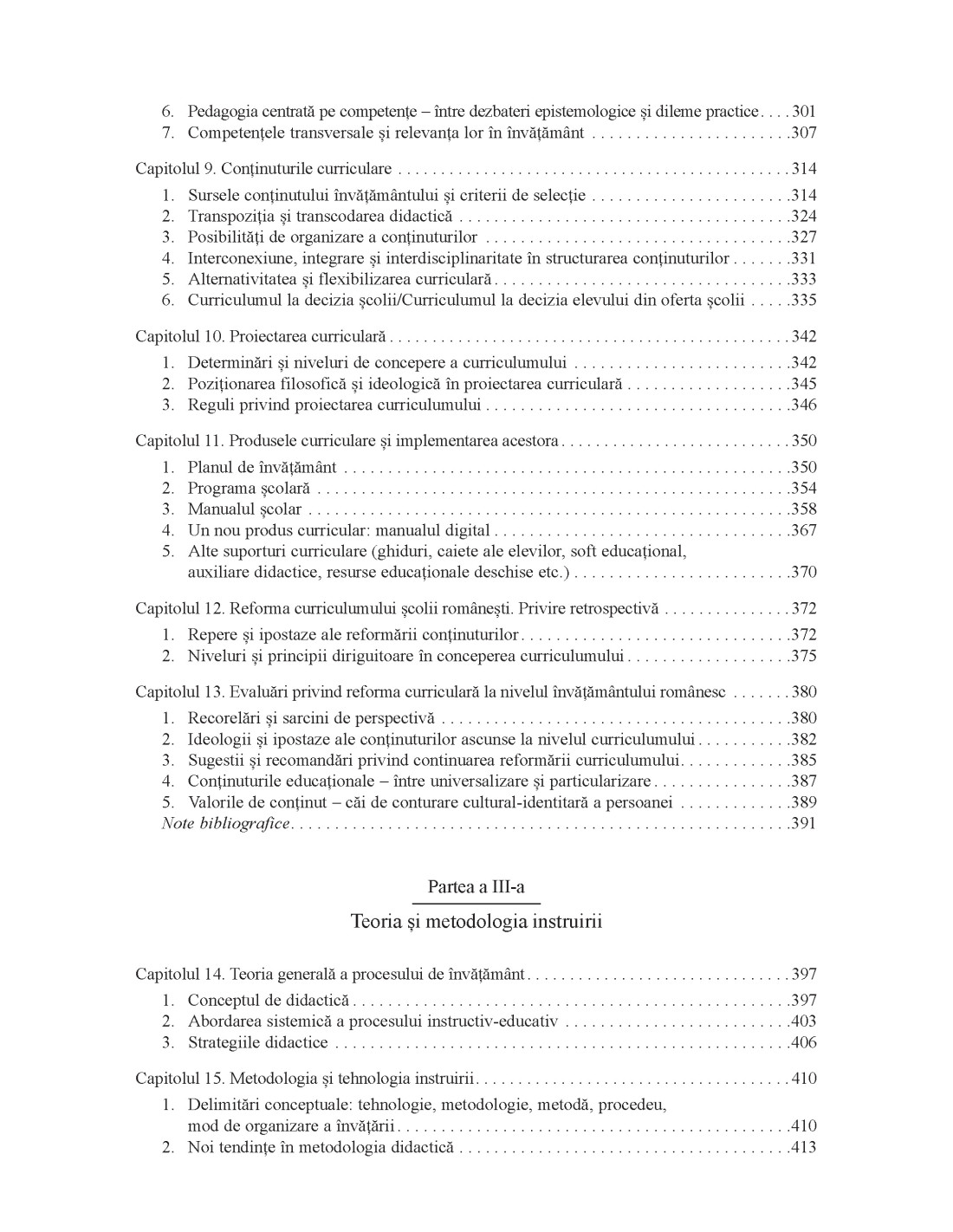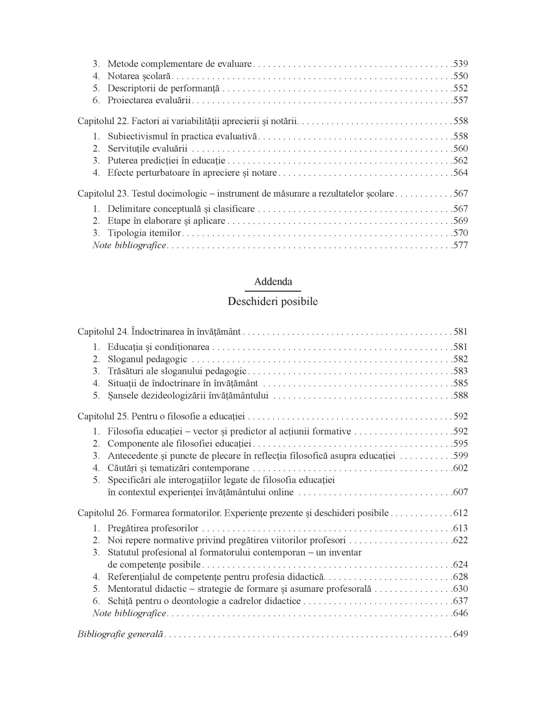 Viitorul educației – câteva direcții și exigențe • Formele educației și relațiile dintre ele • Educația online. Oportunități și limite • Inteligența artificială și educația/pedagogia • Educația de la egal la egal • Competențele transversale și relevanța lor în învățământ • Interconexiune, integrare și interdisciplinaritate în structurarea conținuturilor • Reguli privind proiectarea curriculumului • Descrierea principalelor metode de învățământ • Proiectarea și dimensionarea temelor pentru acasă și/sau pentru vacanță • Mentoratul – ipostază a unei relaționări formative privilegiate • Funcțiile evaluării