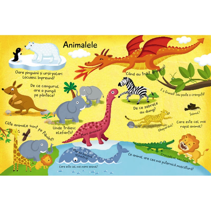 Trebuie doar să ridici clapetele pentru a afla răspunsurile la aceste întrebări și la multe altele, la fel de fascinante. Explorează lumea și găsește răspunsul la fiecare întrebare cu ajutorul acestei cărți care îți oferă explicații interesante despre planeta Pământ.