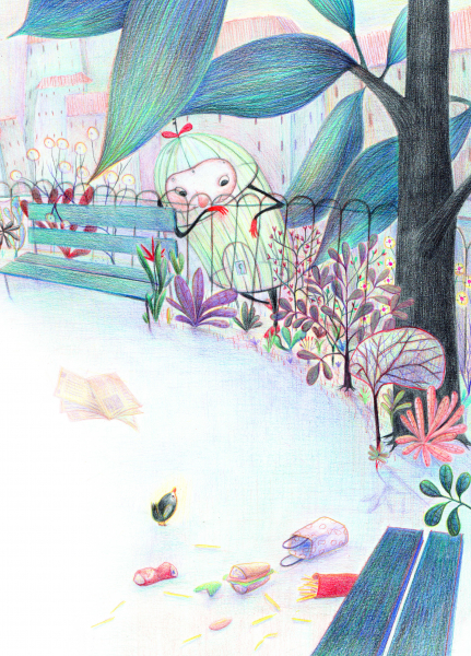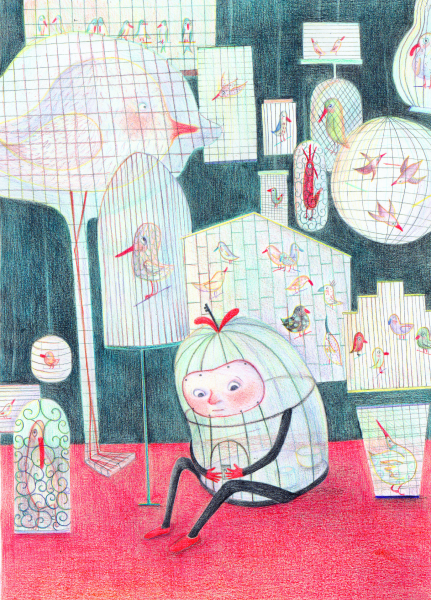 O colivie precum oricare alta, nici prea mare, nici prea mică. Înăuntru, avea o farfurioară cu seminţe şi un bol cu apă proaspătă, iar pe o parte era agăţat un leagăn făcut dintr‐o crenguţă. Era o colivie ca oricare alta, cu excepţia unui mic detaliu: în ea nu locuia niciun canar, papagal, cinteză sau orice altă pasăre asemănătoare.