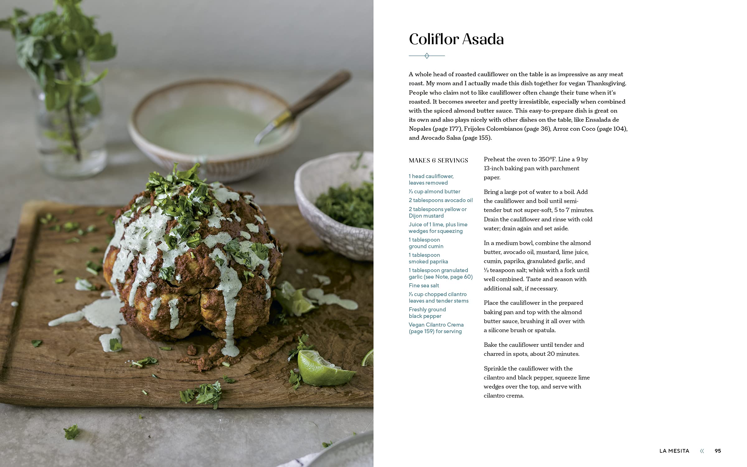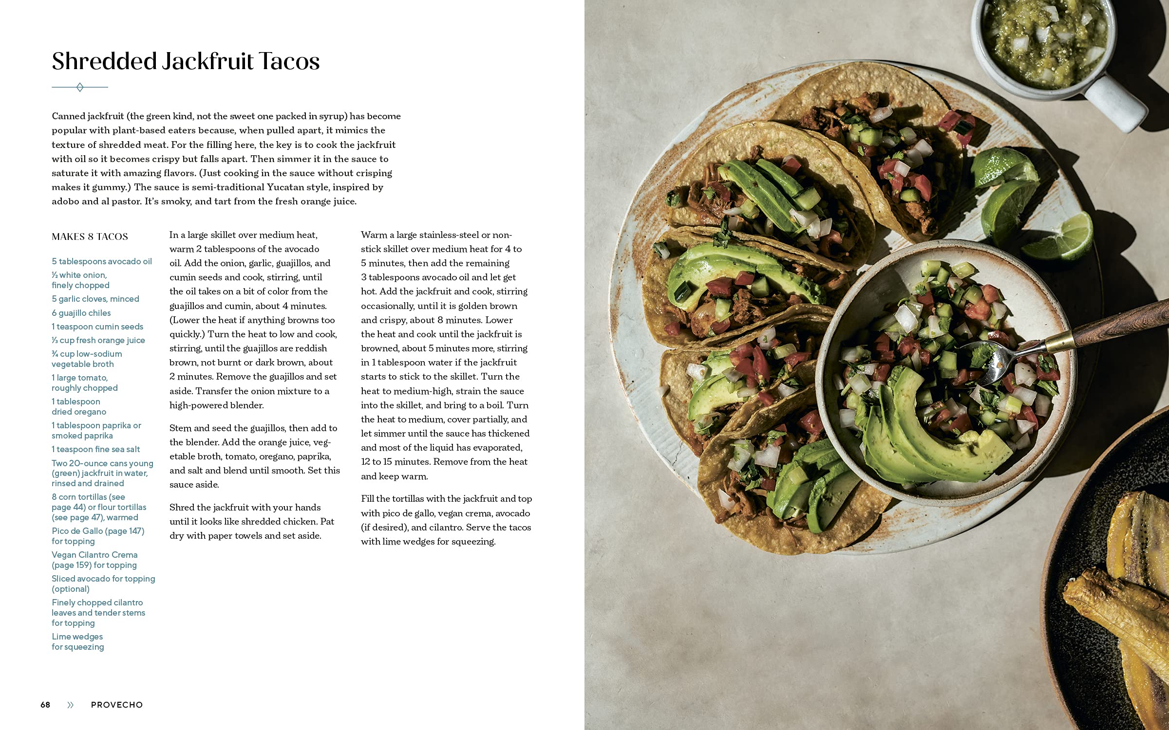 - La Mesa Llena ("The Full Table"): Mushroom Sancocho; No-Bake Enchiladas Verde with Jackfruit; Lentil-Cauliflower Empanadas