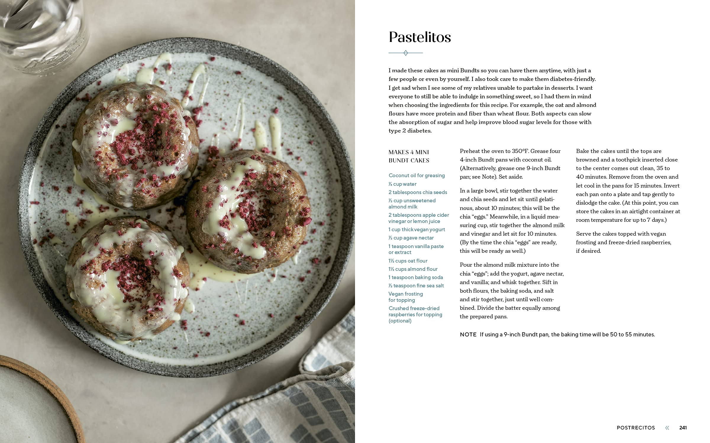 - Postrecitos ("Little Desserts"): Almond Milk Rice Pudding with Cashew Cream; Gelatina de Mango Coco; Apple Empanadas
