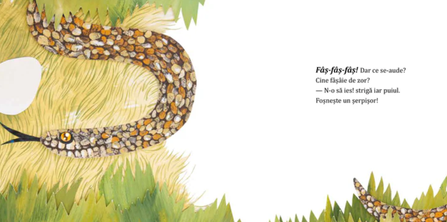 Puiul care nu voia să iasă din ou e o poveste despre cum vrei să fii mereu mic-mic și ocrotit. Un pui de găină nu vrea să iasă din ou: se teme de ploaie, îi e frică de un șerpișor inexistent sau nu cumva să-l calce vreun căluț. Iar mama lui îl convinge liniștindu-l cu promisiuni că va fi bine, și în cele din urmă, puiul iese din ou: „Pâr-pâr-pâr! Dar ce se-aude?/Coaja oului. Se sparge./Puiul, iată, și-a-nvins teama/ și-acum strigă: Ma-ma! Ma-ma!“