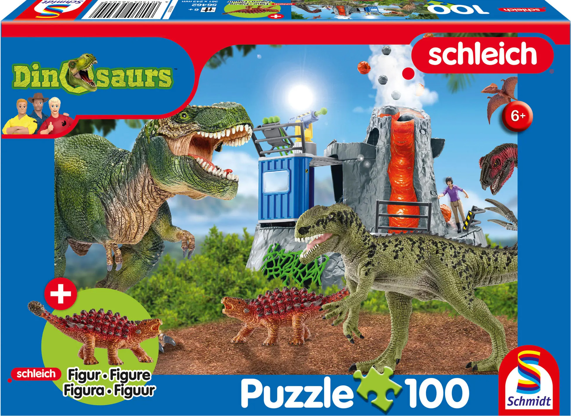Puzzle 100 de piese - Dinozauri din timpuri preistorice + figurina dinozaur Saichania