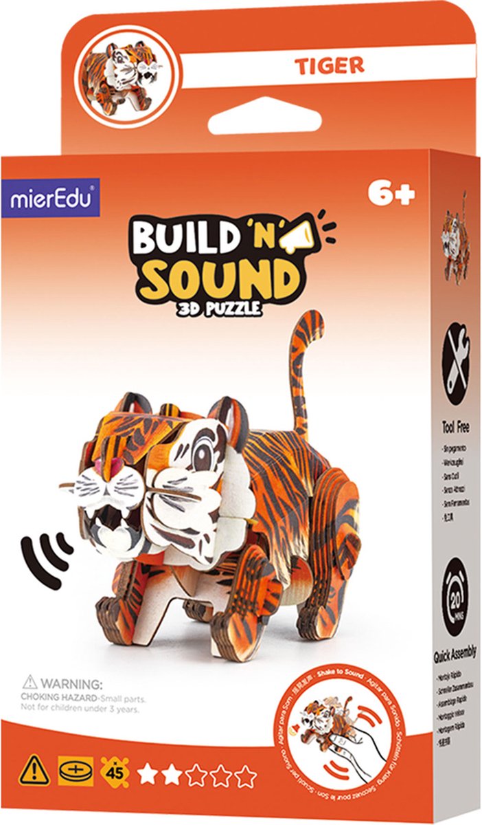 Acest Puzzle 3D 45 piese - Build 'n' Sound - Tigru are 45 piese care se îmbină perfect, rezultând un model de tigru miniatural. Acest puzzle va antrena creativitatea copiilor, dar și dexteritatea lor.