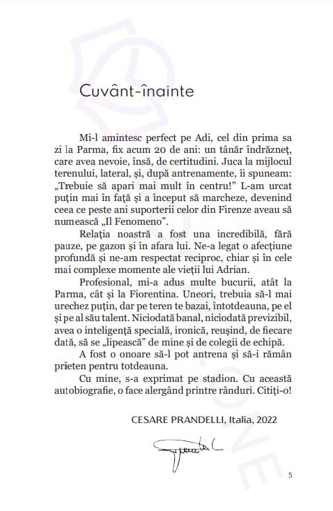„A fost o onoare să-l pot antrena și să-i rămân prieten pentru totdeauna. Cu mine, s-a exprimat pe stadion. Cu această autobiografie, o face alergând printre rânduri. Citiți-o!” – Cesare Prandelli