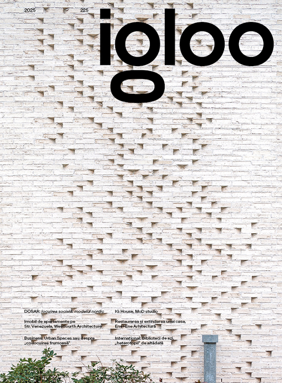 Noul igloo 225 își completează sumarul cu rubricile consacrate de arhitectură românească și internațională, patrimoniu sau design.