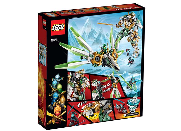Paseste pe Never-Realm LEGO NINJAGO cu puternicul Robot Titan al lui Lloyd si cu Zane FS! Confrunta-te cu armata de Samurai Vifor a Generalului Vex. Dar atentie - Vex are arma sa puternica, Pergamentul Spinjitzu Interzis. Zdrobeste Samuraiul Vifor cu taietorul suriken si uriasa katana a robotului ninja. Detaseaza nava zburatoare, sari in carlinga cu Lloyd si trage cu lansatoarele cu arc. Creeaza o tornada Spinjitzu cu spinnerul ninja al lui Zane. Trebuie sa invingeti impreuna acest inamic periculos!