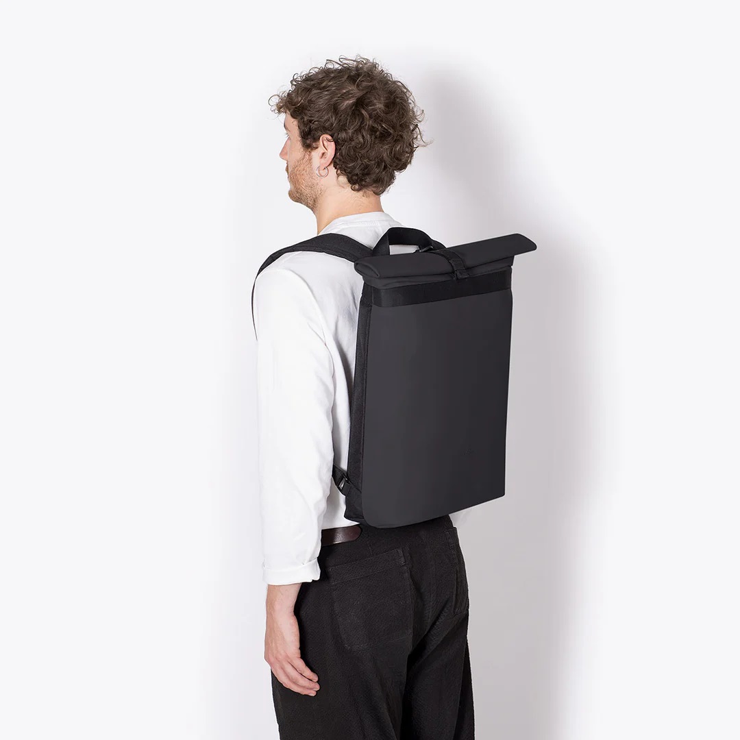Acest rucsac minimalist e potrivit pentru orice ocazie, chiar dacă mergi cu bicicleta, la shopping sau la o petrecere. Partea de sus se rulează cât e nevoie și se închide.