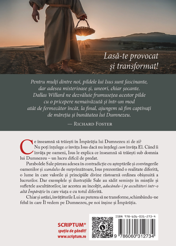 Lasa-te provocat si transformat! Pentru multi dintre noi, pildele lui Isus sunt fascinante, dar adesea misterioase si, uneori, chiar socante. Dallas Willard ne dezvaluie frumusetea acestor pilde cu o pricepere nemaivazuta si intr-un mod atat de fermecator incat, la final, ajungem sa fim captivati de maretia si bunatatea lui Dumnezeu. Richard Foster